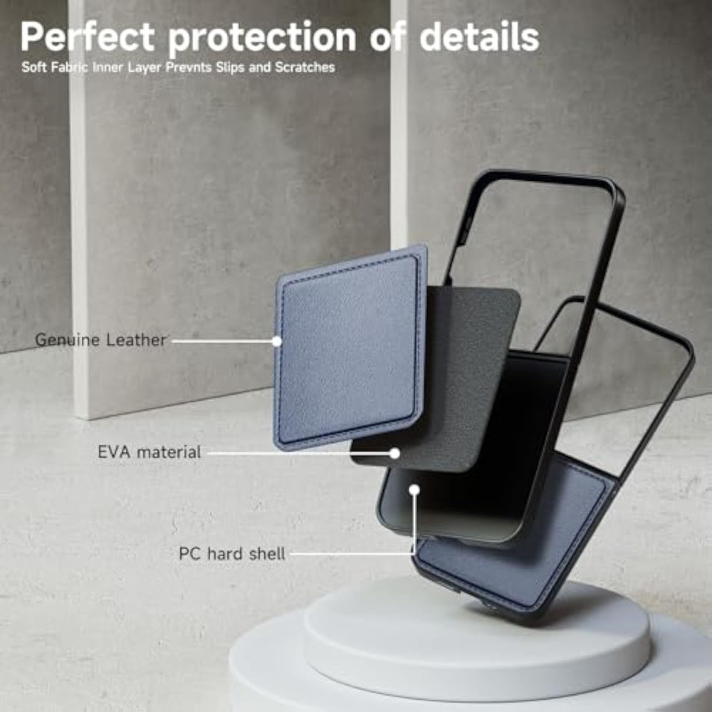| Genuine Leather: Our Leather Case For Samsung Galaxy Z Flip 7 Is Handcrafted From A Full-Grain Of Cowhide Leather And Lined With Fibres To Flatter The Slim Body, Does Not Affect Wireless Charging, Designed To Fit With Samsung Galaxy Z Flip 7 | | Comprehensive Protection: Our Products For Samsung Galaxy Z Flip7 Leather Case Made Of Genuine Leather+Hard Pc, The Back Of The Case Is Made Of Leather Wrapped In A Layer Of Soft Non-Slip Sponge, Which Can Effectively Improve The Protection In The Event Of A Collision, And Also Enhance The Holding Feeling Of The Phone | | Delicate / Ultra-Thin: All-Around Wrapping Provides Excellent Protection, The Back Of The Leather Fits + Hand-Stitched, Small, Lightweight And Very Distinctive Fashion Exquisite Leather Case For Samsung Z Flip7 | | Exquisite Packaging: We Use Rigid Packaging And Are Lined With Soft Sponge To Ensure That You Receive The Physical Product In Condition. The Simple And Stylish Packaging Is Suitable For Any Occasion.They For Any Holiday, Special Event, Birthday, Anniversary, Thank You Or Just To Treat Yourself | | After-Sales: Our