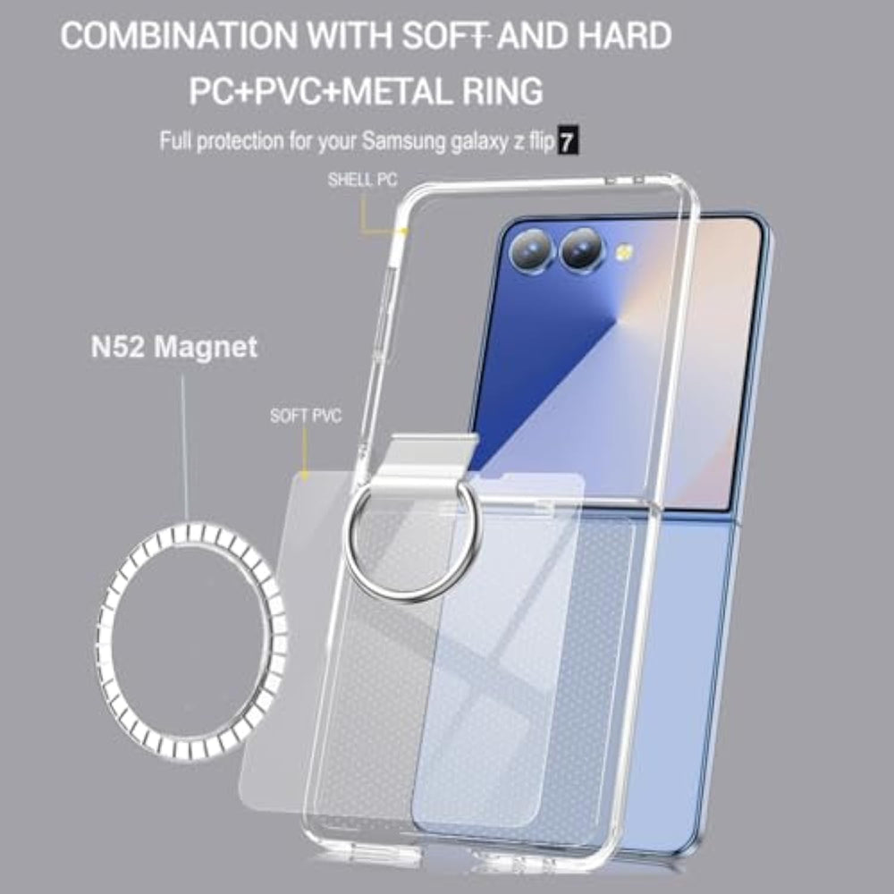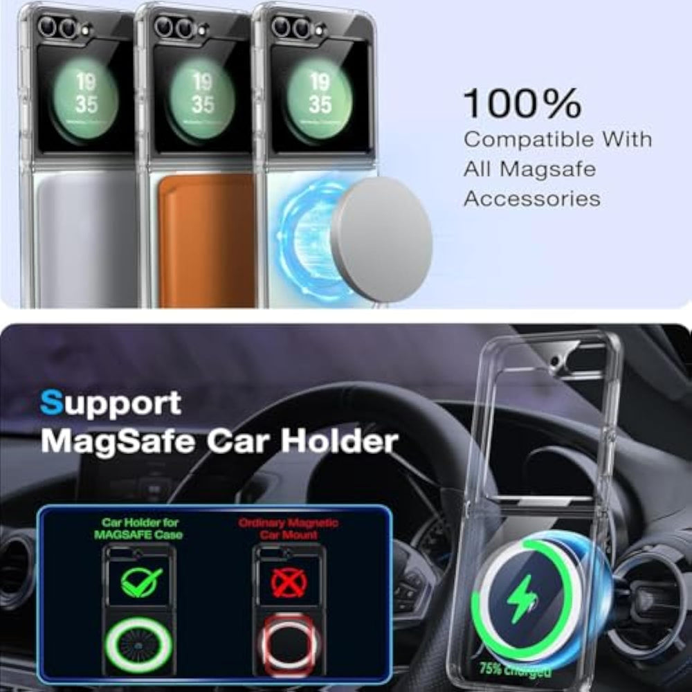 | ??[Compatibility]: Case New Design Only For Samsung Galaxy Z Flip 7 ( 2025 New Released), Not Compatible With Any Other Phone Models. Precisely Cut Openings To Allow Full Access To All The Functions Of Your Galaxy Z Flip7 Smart Phone. | | ??[Compatible With Magsafe] Galaxy Z Flip 7 Case With Built-In 38Pcs N52 Ultra Strong Magnets, Allowing For 2X Stronger Magnetism Than Other Cases, Easily Snap On Magnetic Car Mounts And It Will Never Loose. Compatible With Magsafe Accessories, You Can Easily Snap On Your Magsafe Accessories To Your Phone With This Case, And It Will Automati