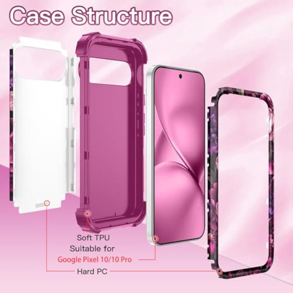 | Compatibility: Specially Designed For Google Pixel 10/10 Pro. Not Compatible With Other Models. Note: Screen Protector Is Not Included. | | Fashion And Unique Floral Pattern: The Floral Partern Was Printed Under A Layer Of Pet. It Makes Printing Vivid And Never Fade And Makes Your Phone Different And Eyes-Catching. | | Heavy Duty Protection: Tough Pc Cover + Plastic Bumper + Soft Flexible Silicone Inner. Triple-Layer Protection Can Resist Falling, Scratching, Collision And Impact. | | Full Degree Of Protection: Covers All Four Corners And Includes Raised Edges And A Pcsilicon Lip To Keep The Screen From Scratching Or Touching The Ground. | | Precise Cut And Design: Easy Access To All Ports, Sensors, Speakers, Cameras And All Features. | |