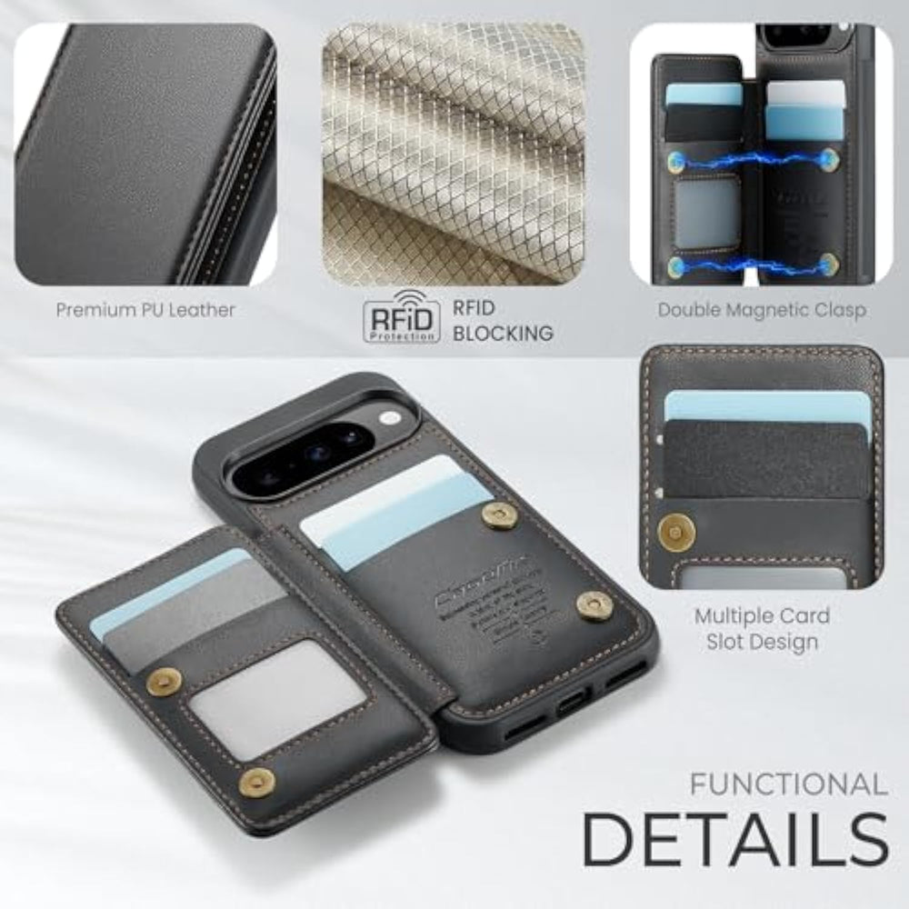| ?Compatible Models?Specially Designed Case For Google Pixel 10/Google Pixel 10 Pro ( 2025 Release ) Only, Not Fit For Other Phone Model. Please Check Your Phone Model Before Place An Order. | | ?Card Holder?This Phone Case Compatible With Google Pixel 10/Google Pixel 10 Pro The All-In-One Design Combining Wallet And Phone Case Into One, Magnetic Closure With 4 Card Holders Is Designed For Ids, Debit Cards, Credit Cards, Etc. The All-In-One Design Allows You Easy To Carry When Go Outside. | | ?Rfid Blocking?Equipped With Rfid Blocking Technology, Wallet Case For Google Pixel 10/Google Pixel 10 Pro Is Designed To Protect Your Cards, Information From Theft With An Innovative Blocking Material. Most Credit Cards, Debit Cards, Id Cards Are Set-In The Rfid Chip, The Rfid Reader Can Easily Read The Cards Information Within 10 Feet(About 3M) Without Touching Them. | | ?Precise Cut-Outs?Functional Durable Provide Quick Access To All Touch Controls, Features, And Ports , Plugging In, Adjusting Volume Or Switching On/Off And Taking Photos Or Video, Meeting Your Outside Daily Use. | | ?Durable Shockproof ?Made Of Durable Pu Leather And Hard Pc Bumper For Google Pixel 10/Google Pixel 10 Pro. Hand-Made Craftsmanship , A Full-Scale Covering And Anti-Fall Protective System Makes Your Phone Safe. Makes Your Work And Life More Convenient. | |
