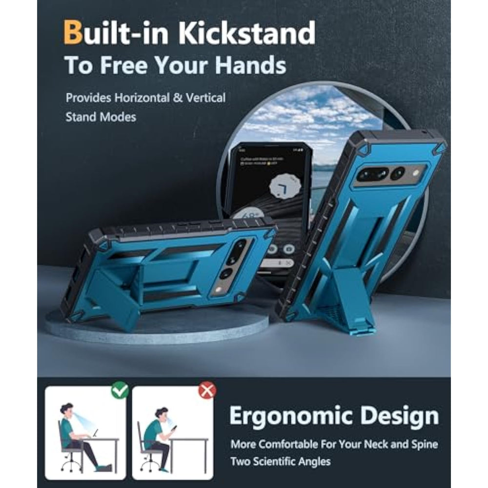 | Military Grade Protection: This Google Pixel 7 Pro Cases Have A Dual-Layer Protection Structure Design With Tpu , Which Provide Great Shockproof, Anti-Drop, Impact Resistant And Scratch Proof Performance | | Built-In Kickstand: Google Pixel 7 Pro Cover Is Design With Built-In Kickstand, Works Perfectly Both In Vertical And Horizontal Positions. Making You Hands-Free On Reading, Watching Movies Or Face-To-Face Chatting | | Built-In Screen Protector: Dual-Layer Design Of The Pixel 7 Pro Cases Provide A Built-In Clear Screen Protector With Sensitive Touch Performance, Which Prevent Your Phone From Accidental Scratches Without Any Tempered Glass Screen Protector | | Full Body Protection: This Heavy Duty Rugged Pixel 7 Pro Cases Provide Unique Shock Absorption Design With Grooved Airbag Of Corners, Raised Edges Also Prevent Camera Lens From Scratching And Collision | | Pixel 7 Pro 5G Case Use Comfortable: The Matte Edges And Non-Slip Texture Of Sides Prevent Phone From Slipping, Also Keep The Clean From Fingerprints And Oil. Providing Full Body Protection For Your Pixel 7 Pro In All Activities | |