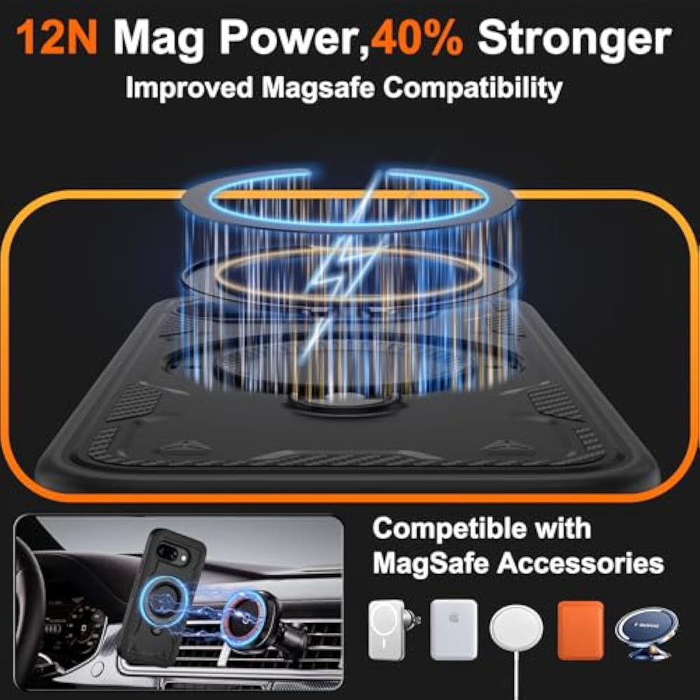 | ?Compatible With?:Specially Designed For Google Pixel 9A Case. Package Includes Hd Screen Protector *2(Plastic). Note !!! Not Fit For Google Pixel 9?google Pixel 9 Pro Google Pixel 9 Pro Xl, Not Fit For Other Phone Models,Compatible With Magsafe Wireless Charging | | ?Strong Magnetic Attraction?: Compatible For Magnetic Chargers And Other Qi Wireless Chargers Without Signal Interference. And It Also Supports Other Mag-Safe Devices.Our Phone Cover Has N52 Magnets Built In.Its Magnetic Attraction Is Far More Than 8X That Of Others, So It Won'T Fall Off No Matter How You Use The Mag-Safe Magnetic Suction Function In Your Daily Life, It Will Not Fall Of | | ?Built-In Magnetic Foldable Invisible Stand?This Pixel 9A Case With Magnetic Folable Ring Stand Holder; Provide A Adjustable Vertical And Horizontal Stand Style, Meet All Your Needs | | ?14Ft Military Grade Drop Protection?: Shockproof Tpu Is Combined With The Built-In Hard Pc To Protect Your Google Pixel 9A/Google Pixel 9, And Features 4 Built-In Corner Airbags To Absorb Impact, Which Can Protect Your Phone From Accidental Drops, Bumps, And Scratches.This Google Pixel 9A Case Frosted Surface Provides A Comfortable Hand Feel, And The Nano-Antioxidant Layer Can Effectively Prevent Stains And Scratches | | ?What You Get?Package Includes :1X Samsung Google Pixel 9A Case And 2×Hd Screen Protector. Our Products Come With 30 Days . If You Have Any Questions Please
