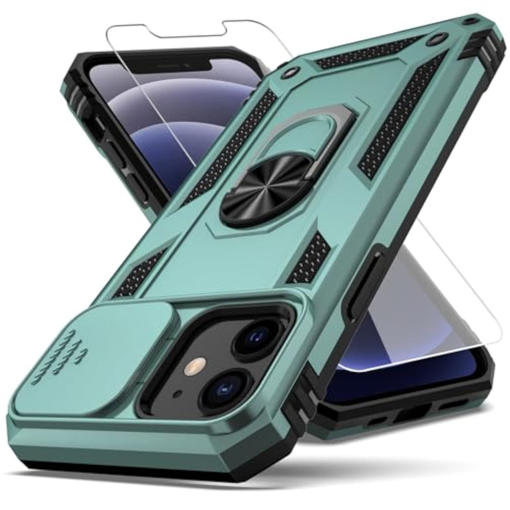 | ???Durable Phone Case?Armor Case With Sliding Camera Cover Specially Designed For Iphone 12 6.1 Inch (2020 Released). ?? Notice: Due To The Metal Ring On The Back,The Case Will Not Work With Wireless Charging Function. | | ???Perfect Product Design?Two - In - One Case, Consists Of Comfortable Tpu And Hard Pc, The Two Are Closely Aligned, Escort Your Phone. All Buttons And Interface User-Friendly Design To Avoid Frequent Disassembly. And The Case Perfect Cutouts For Speakers, Camera And Charging Hole Allow You To Easy Acces. | | ???Military Shockproof Protection?Double Layer Shockproof Case Made By Tpu+Pc.This Multi-Layer Cushion Structure Provide Additional Shock Absorption Protection. Slide Camera Cover Design Protects And Hides The Camera Perfectly. 4 Highly Strength Shockproof Corners And Raised Lens And Screen Lips Keep Your Phone From Scratching And Breaking When Dropped. It'S A Good Choice For Sports And Outdoor Activities. | | ???Magnetic Ring Kickstand?Newly Upgraded Multi-Function Case Built-In Ring Kickstand And Metal Patch.360°Rotating Ring Provide Two Stand Modes For Vertical Horizontal Viewing,So It Can Be Used As Ring Holder And Release Your Hand When Watching Video.The Metal Patch Back Easily Attach To Magnetic Car Mount,Very Convenient During Driving Time For Navigation.You Will Love How Convenient It Is With Such Powerful Functions. | | ??? Service?Package Come With 1 Pack Case And 1 Pieces Pet Hd Screen Protector (Plastic). Provides You Service. If You Have Any Problems With Our Products, Please