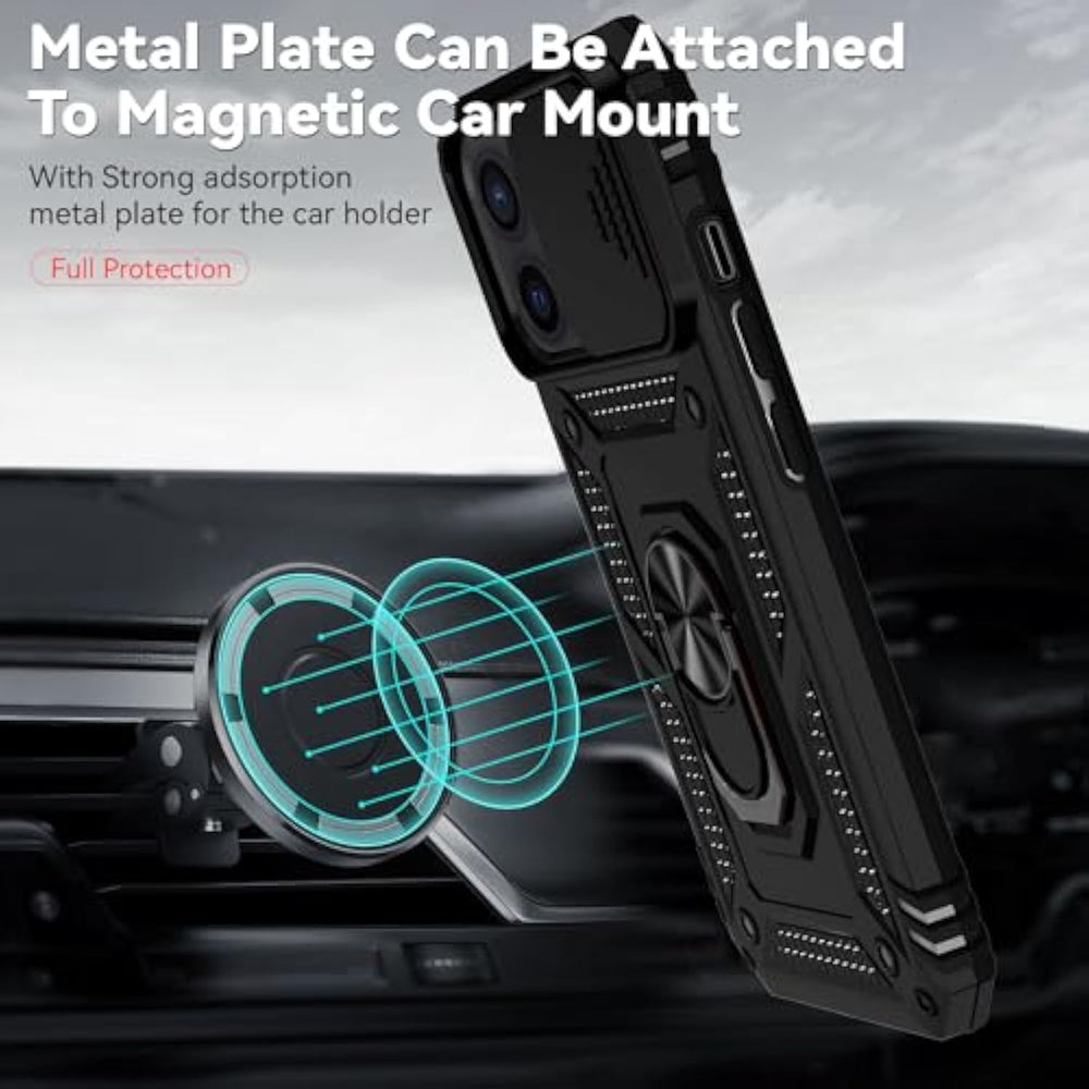 | ? Perfect Fit?Designed For Iphone 12 6.1 Inch. Won’T Compatible With Any Other Phone Models.Precise Cutouts Ensures Full Access To All Ports And Buttons. Package Inludes Hd Screen Protector (Plastic) | | ?Camera Protection?Unique Design Of Camera Slide Cover,Higher Than The Rear Camera Lens, Protects The Camera Lens Against Scratches,Scrapes,Impacts While Helps Protect Your Privacy From Revealing | | ?Full Body Protection And Shockproof? Dual Layer Back Bumper(Soft Tpu + Hard Pc ) Military-Grade Protection, To Protect The Back And Sides Of Your Phone Against Scratches, Shock, Bumps, Fingerprints And Dust. | | ?360° Rotating Kickstand Ring?Equipped With Premium Metal Ring Kickstand, Designed For Iphone 12 Case With Screen Protector Offers Multiple Adjustable Angles. Built In Kickstand Holds Your Phone At Optimal Viewing Angles For Movies Videos And Ase Hands When Watching Films, Playing Games Or Online Chatting. | | ?What You Get? Our Products Come With 30 Days . If You Have Any Questions Or Anything You Feel Unsatisfied, Please Feel Free To