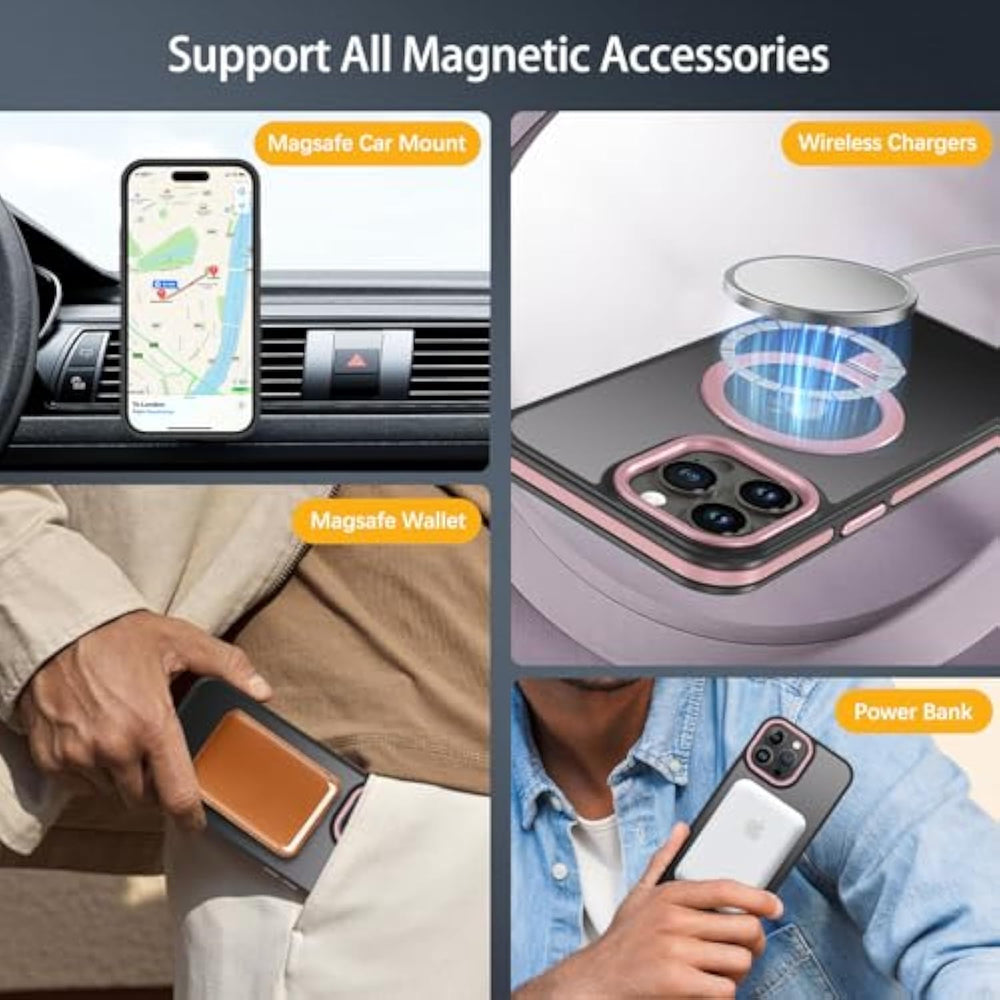 | Compatibility: Compatible With Iphone 14 Pro Max 6.7". Please Carefully Confirm Your Phone Model Before You Purchase The Case | | Quick Charging Experience: Particularly Designed For Iphone 14 Pro Max 6.7", The Phone Case Is Compatible With Magsafe Chargers And Other Qi Wireless Chargers Without Signal Influence. The Magnetic Can Be Firmly Connected To All Magnetic Accessories Like Magsafe Charger, Official Battery Pack, Leather Wallet Or Sleeve, Stand Wireless Charger, Magsafe Car Mount | | Translucent Matte Back: The Matte Back Stays Clean With A Smart Nano Oleophobic Coating Design That Prevents Fingerprints, Watermarks, Oil, And Dust. Meanwhile, The Case For Iphone 14 Pro Max Also Brings You Excellent Skinny Touch | | Full Protection: Raised Bezel For Screen And Lens Will Protect Your Iphone 14 Pro Max 6.7" Screen And Camera From Scratching When Placed Down.(Without Screen Protector) | | Shockproof And Protective: Made Of Flexible Tpu Frame And Anti-Scratch Pc Back, Highly Defend Your Device Against Severe Shocks And Drops. Offer Extra Protection With Raised Lips Around The Screen And Camera Protection | | Easy Access: Strictly Follow The Real Iphone 14 Pro Max Phone To Open The Mold Production. Easy Access To All Functions, Ports And Buttons Of Your Phone. Fashionable Phone Case For Girls, Women, Men And Boys | |