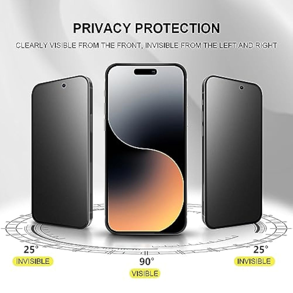 | Applicable Model: Iphone 15 Pro 6.1" 2023 (Note: Non-Applicable For 15/15 Pro Max/15 Plus. Please Check Your Phone Model Before Purchasing.) Matte Privacy Screen Protector Adopts German Glass As The Base Material With 9H Hardness Which Can Effectively Protect Iphone 15 Pro Screen Against Daily Collisions. Compatible With 99% Of Phone Cases On The Market With Perfect Size And No Interference. | | Anti-Peeping Privacy Protection: Advanced 25°Privacy Technology Is Adopted With A Smaller Viewing Angle But Higher Clarity Than Most Privacy Screen Protector On The Market. To Protect Privacy, The Screen Is Only Visible To Users In Front Instead Of Bystanders. (Note: The Anti-Peeping Effect Is Only Functional For Left And Right Angles Instead Of Vertical Ones, And It Is Recommended To Increase The Brightness Of Phone 15 Pro Screen When In Use.) | | Anti-Glare Matte: Matte Can Prevent Light Reflection And Glare To Clearly Display The Iphone 15 Pro Screen Even In Strong Sunlight. Clarity Is Higher Than That Of Other Matte Privacy Screen Protector Tempered Glass. Electroplated Oleophobic Layer Coating Can Avoid Oil And Fingerprints And Keep The Screen Clean. With A Super Smooth Touch And Responsive Response, Matte Glass Is The Best Choice For Game Players. | | Camera Lens Film: Black Circle Design Can Effectively Prevent Photo Overexposure By Iphone 15 Pro. Fingerprint-Resistant, Scratch-Resistant, Strong Adhesion Without Easy Falling-Off, Accurate Size. With 99.99% Light Transmittance, It Can Fully Show The Original Quality Of Iphone 15 Pro With Super Clear Viewing And Photo Experience Day Or Night. | | Perfectly Compatible With Face Id And Dynamic Island: Please Feel Assured That Matte Privacy Screen Protector Tempered Glass Will Never Interfere With The Normal Operation Of Face Id And Dynamic Island. Precise Mounting Frames And User Manual Are Provided For You To Easily Achieve Perfect Alignment, Even Novices Can Quickly Mount It Within Seconds. | |