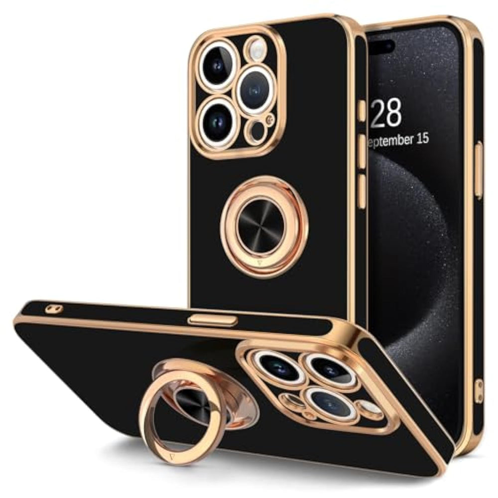 | Compatible Models: Only Compatible With Iphone 15 Pro 6.1 Inch 2023, Not Compatible With Any Other Phone Models, Please Confirm The Model Before Purchase | | Ring Kickstand Design: The 360 Degree Adjustable Rotatable Ring Holder Can Be Used As A Stand To Prop Up The Phone, The Built-In Ring Design Is Convenient For Watching Video Hands-Free, Also Easy To Grip On Your Finger, Provides Added Security When Holding The Phone | | Support Magnetic Car Mount: The Center Of The Ring Stand Has A Metal Sheet, Which Can Be Directly Adsorbed To The Magnetic Car Mount, Making Your Driving Much Easier And Safer. Note: Due To The Iron Metal Kickstand, It Is Not Compatible With Any Wireless Charging | | Plated Edge Slim Fit: The Shiny Rose Gold Electroplate Edge Design Makes Your Iphone Luxury And Elegant. The Outside Has High Quality Flexible Soft Tpu That Will Be Lightweight, Not Bulky, Scratch-Resistant, Anti-Fingerprint And Non-Slip. The Inside Has Soft Microfiber Lining To Protect Your Phone From Scratches | | Full Body Protection: Up Full Camera Lens Coverage, This Cute Iphone 15 Pro Phone Case Has Enough Raised Lip To Protect The Front Screen And The Back Camera Lens, Sturdy, Shockproof And Drop Protection | |