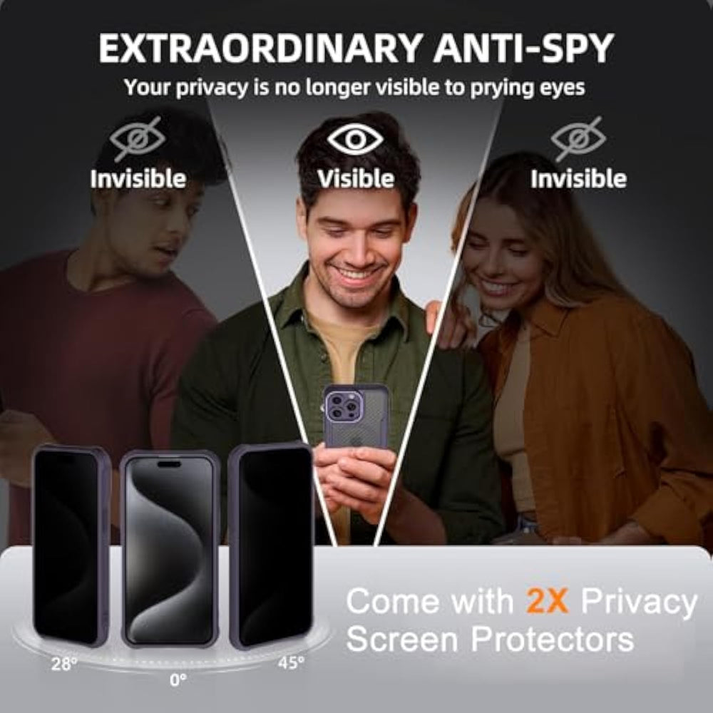 | Come With Privacy Screen Protectors: This Iphone 15 Pro Max Case Comes With 2 Pcs High Quality 9H Anti-Spy Tempered Glass Screen Protectors, It Can Not Only Protect Your Iphone Screen From Scratch And Broken, But Also Keep Your Private Moments And Sensitive Details From The Curious Eyes Of Strangers | | Ultra Strong Magnetic Adsorption: For Iphone 15 Pro Max Magsafe Case Is Embedded With 38 N52 Magnets, Boasting A Magnetic Attraction Strength Of Up To 18N, Never Shaken Off Even Violent Swinging. This Iphone 15 Pro Max Magnetic Case Compatible With All Magsafe Accessories, Including Magnetic Charger, Car Mount, Wallets, Etc | | Upgraded Full Coverage Camera Protection: Unique Built-In Camera Cover Enhanced Camera Protection, Prevents Your Iphone 15 Pro Max Camera From Any Shatter, Scratch, Or Dust. Meanwhile, Makes Your Camera Color Match The Iphone 15 Pro Max Phone Case, Looks More Uniform And Fashional | | Military-Grade Drop Protection: For Iphone 15 Pro Max Cases Is Certified In Drop Tests. It Combines A Soft Frame And A Hard Acrylic Back Cover With Four Built-In Corner Airbags To Absorb Impact, Safeguarding Your Iphone From Accidental Drops, Bumps, And Scratches | | Perfect Fit Anti-Scratch: Case For Apple Iphone 15 Pro Max (6.7-Inch), Precise Cutouts For Effortlessly Access All Ports, Not Interfere With Camera Flash; Carbon Fiber Texture Enhanced Scratch Resistance For An Always-Flawless Look | |