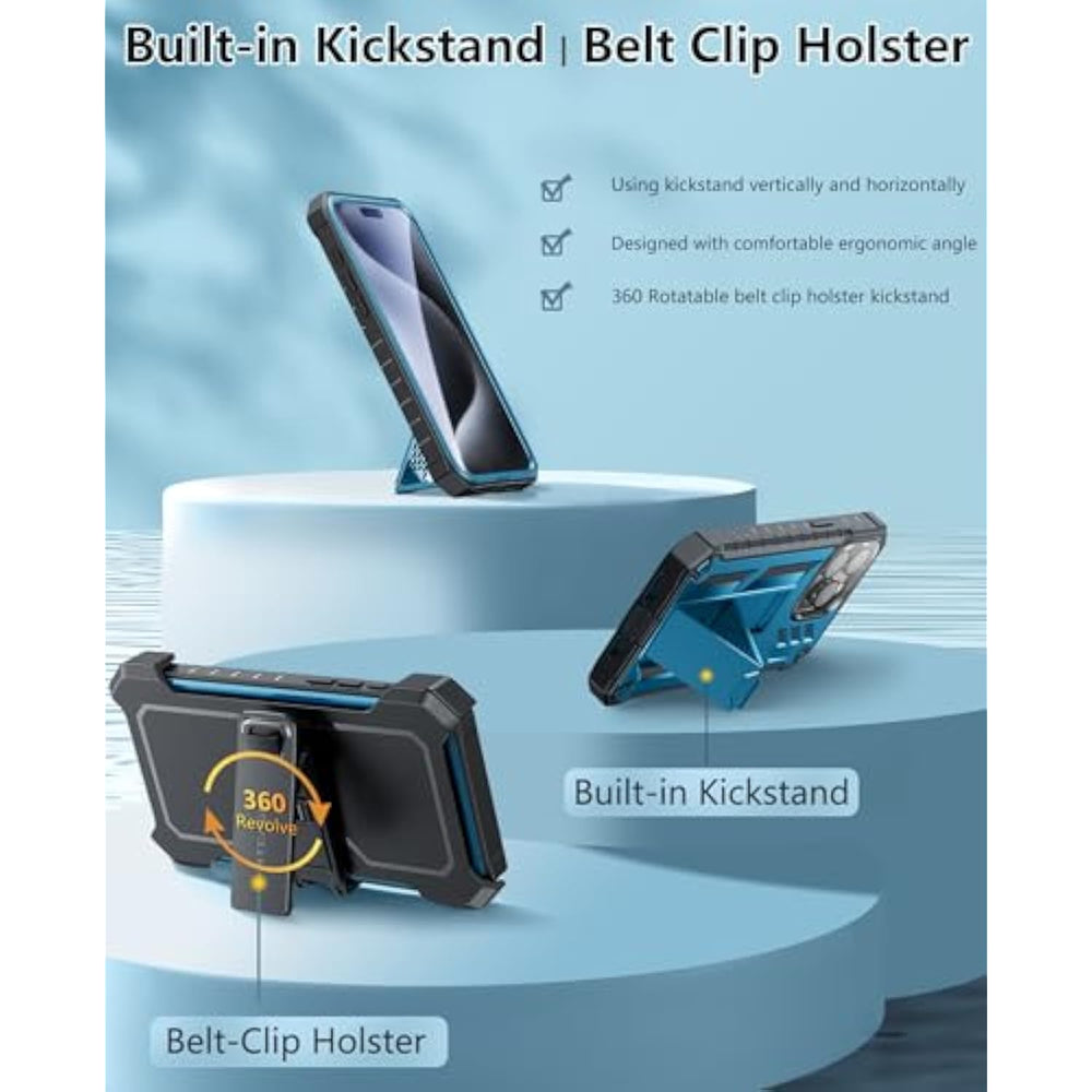 | Only For Iphone 15 Pro Max : Include Iphone 15 Pro Max Case With Built-In Kickstand *1, 360°Rotatable Belt-Clip *1, Phone Frame With Built-In Screen Protector *1 | | 360° Rotatable Belt-Clip: Iphone 15 Pro Max Case Provide A 360° Rotatable Belt Clip, Which Can Be Used As A Kickstand.This Case Can Protect Your Phone From Damage When Working Outdoors, Sports, Camping, Traveling. Make More Convenient For You | | Military Grade Protection: Iphone 15 Pro Max Case Have A Full-Body Protection Structure Design With Durable Tpu , Which Provide Anti-Drop, Impact Resistant And Scratch Proof Performance. It Also Have Unique Shock Absorption Design With Grooved Airbag Of Corners, Raised Edges Also Prevent Camera Lens From Scratching And Collision | | Built-In Kickstand: Iphone 15 Pro Max Cover Is Design With Built-In Kickstand, Works Perfectly Both In Vertical And Horizontal Positions. Making You Hands-Free On Reading, Watching Movies Or Face-To-Face Chatting | | Built-In Screen Protector: Dual-Layer Design Of The Iphone 15 Pro Max Cover Provide A Built-In Clear Screen Protector With Sensitive Touch Performance, Which Prevent Your Phone From Accidental Scratches Without Any Tempered Glass Screen Protector | |