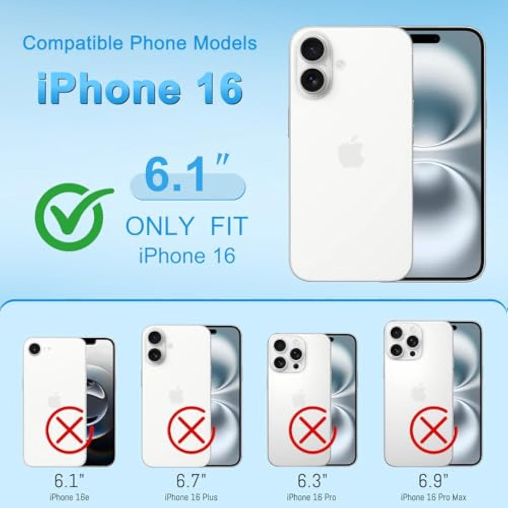 | ?Perfect Fit Compatibility?---Designed Exclusively For The Iphone 16 6.1 Inches.Not Fit For Iphone 16 Pro Max/Iphone 16 Pro/Iphone 16 Plus. Please Check Your Phone Model Before Purchg To Avoid Any Inconvenience | | ?Large Storage?---Features 6 Card Slots,1 Photo Slot And 1 Cash Pocket, Transforming Your Phone Into A Convenient Wallet | | ?Stylish Pu Leather Versatile Carry Options?---Crafted From Fashionable, Soft Pu Leather For A Premium Feel And Durability.The Detachable Strap Offers Adjustable Length, Enabling Convenient Hand Carry Or Secure Crossbody Carry For Ultimate Freedom On The Go | | ?Full Body Protection Secure Closure?---Provides All-Around Protection With Raised Bezels For Screen And Camera. Features A Strong Magnetic Closure For Secure Holding And Easy Access. Engineered With Shockproof Materials For Reliable Drop Protection | | ?Worry-Free Assurance?---Backed By Our Dedicated