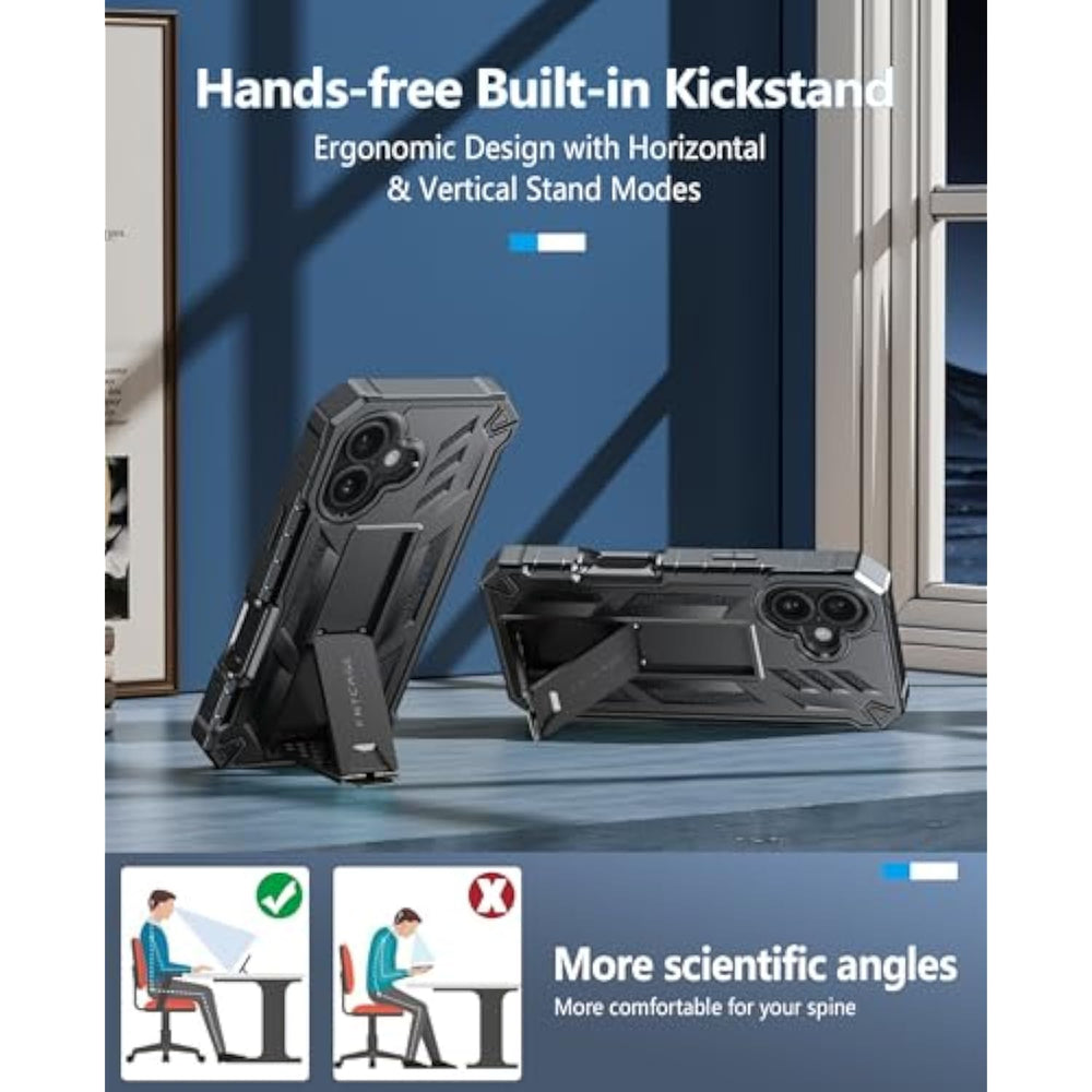 | Compatibility: Armor Rugged Defender Military Grade Heavy Duty Protective Phone Case Designed For Iphone 16 Plus Case,6.7 Inch,Released In 2024.Precise Cutouts Ensures Full Access To All Ports And Buttons | | Built-In Kickstand: The Iphone 16 Plus Case With Stand Works Perfectly Both In Vertical And Horizontal Positions.Convenient For Reading,Watching Movies,Playing Games,Browsing The Web And Face-To-Face Chatting With Friends.Provides Hands-Free Portrait And Landscape Viewing Angles | | Built-In Screen Protector: This Clear Screen Protector With Sensitive Touch Performance While Prevent Your Phone From Accidental Scratches.Add A Layer Of Protection For Screen.Raised Bezels Help Ensure Touch Screen To Avoid Scratches When Placed Face Down | | Full Body Protection: This Armor Case Four-Corner Grooved Airbags,Unique Shock Absorption Design,More Comprehensive Protection Of The Fragile Parts For The Smartphone.Raised Lips Keeps Camera Lifted To Prevent Your Lens From Shock,Collision And Scratch.In Addition,Our Phone Case Also Has Lens Film To Prevent Your Phone Lens From Being Damaged | | Comfortable: The Non-Slip Texture On Both Sides Has A Better Grip, And Matte Edges Reduce The Adhesion Of Fingerprints And Oil To Ensure The Visually Clean While Enhancing The Handheld Touch To Make The Case Not Easy To Slip From Your Hand | |