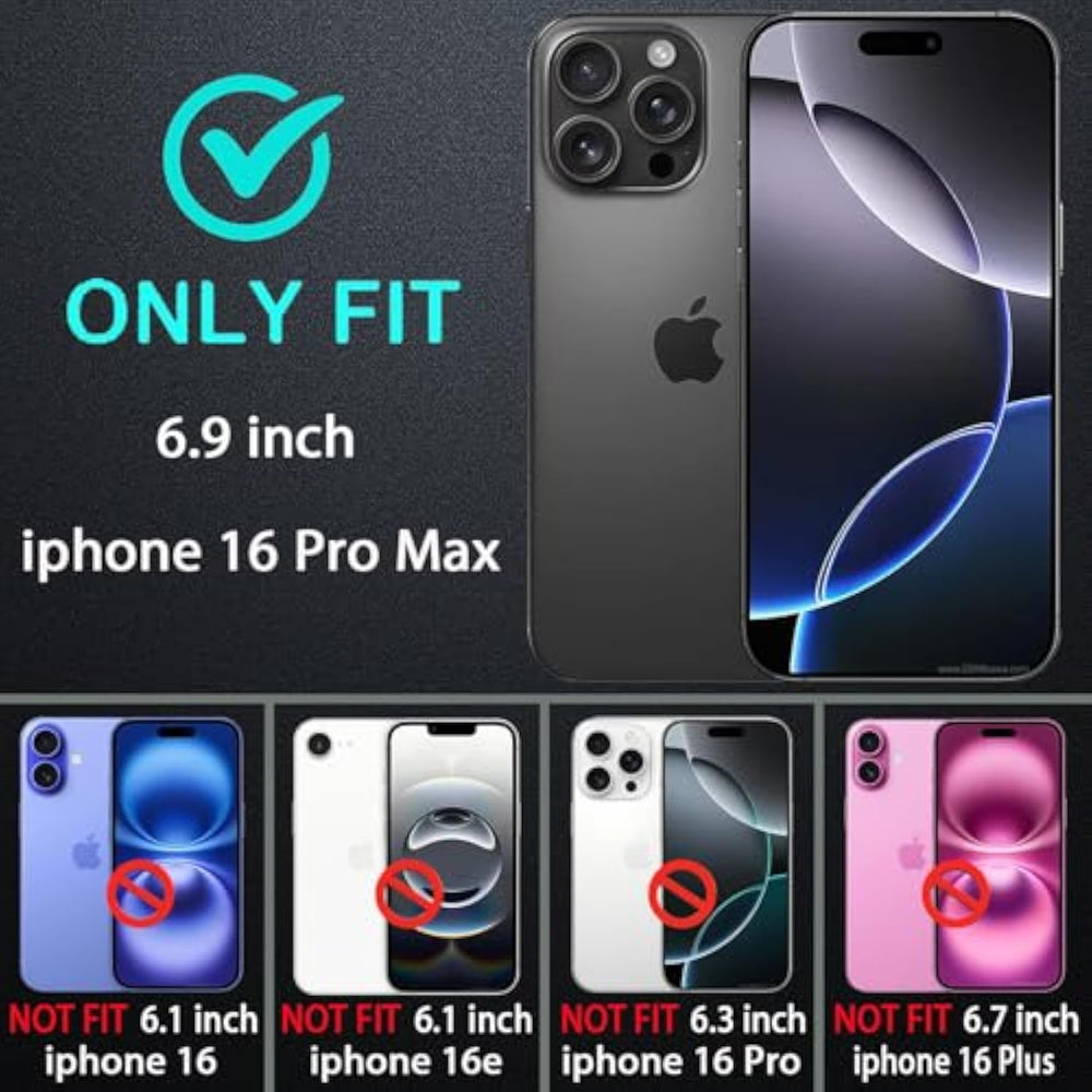 | ???Compatible Phone Models?: Compatible With Iphone 16 Pro Max (6.9 Inch), [Not Fit Iphone 16/16E/16 Pro/16 Plus], Please Confirm Your Mobile Phone Brand And Model Before Buying. | | ???Enhanced Screen ? Camera Protection?: Iphone 16 Pro Max Case Designed At The 2.5 And 2Mm Edges Of The Camera And Screen, Which Effectively Prevents The From Scratching, Can Better Protects The Camera And Screen. | | ???Durable Material] ?: Iphone 16 Pro Max Case Adopts 3 In 1 Design, Constructed From High-Grade Silicone And Pc Polycarbonate, Will Withstand Accidental Drops, Bumps And Shock. Rubberized Textured Case Adds Protection And Makes Gripping Your Iphone 16 Max Safe And Easy. | | ???Precision Design?: Iphone 16 Pro Max Case Easy Access To Buttons, Speaker, Charging Port And All Other Functioning Ports, With Dust Plug, It Can Protect The Charging Jack And Prevent Dust Or Dirtfrom Entering, Keep Ports Clean, (Supports Wireless Charging). | | ???What You Get?: Iphone 16 Pro Max Case X 1, Tempered Glass Screen Protector X 2, Cleaning Kits X 2, Our Products Come With 90 Days , If You Have Any Questions Or Anything You Feel Unsatisfied, Just