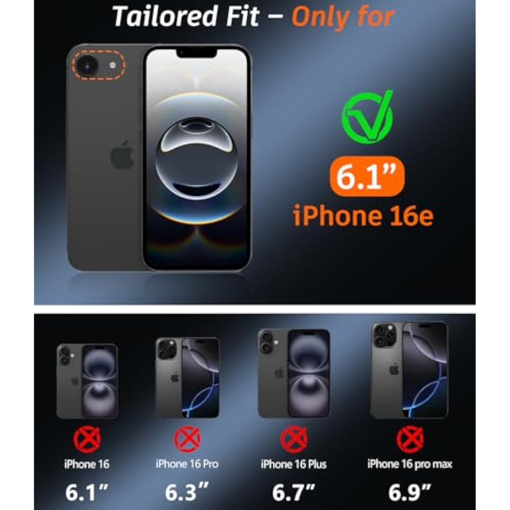 | [Perfect Compatibility] - Designed Exclusively For Iphone 16E With Precision-Cut Ports Retains Original Button Tactile Feedback. [Note: Not For Iphone 16 Or Iphone 16 Plus Or Iphone 16 Pro Or Iphone 16 Pro Max] . | | [Tri-Layer Military-Grade Shockproof] - Innovative 3-Layer Structure Combines Rigid Polycarbonate Frame + Shock-Absorbing Silicone Core + Reinforced Magnetic Ring Back Plate, Certified To Withstand 15Ft Drops.(Reinforced Magnetic Ring Back Plate Is Compatible With Wireless Chargers And Most Magsafe Accessories). | | [360° Protection System] - High-Elasticity Central Silicone Core Technology Provides Impact Dispersion, Extra-Thick 2.5Mm Silicone Cushions At Four Corners Absorbing Shocks From All Directions. Raised Screen Lens Edge And 2X Hd Camera Lens Protectors Screen Protectors Specifi
