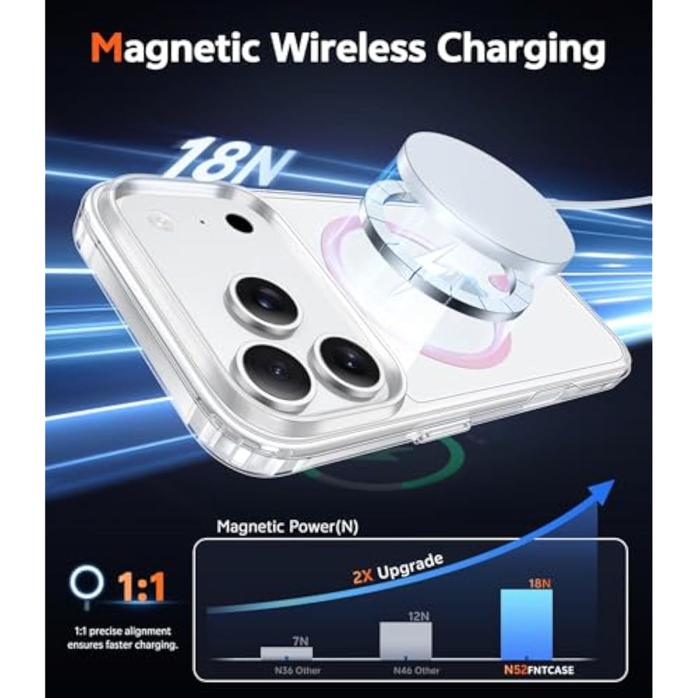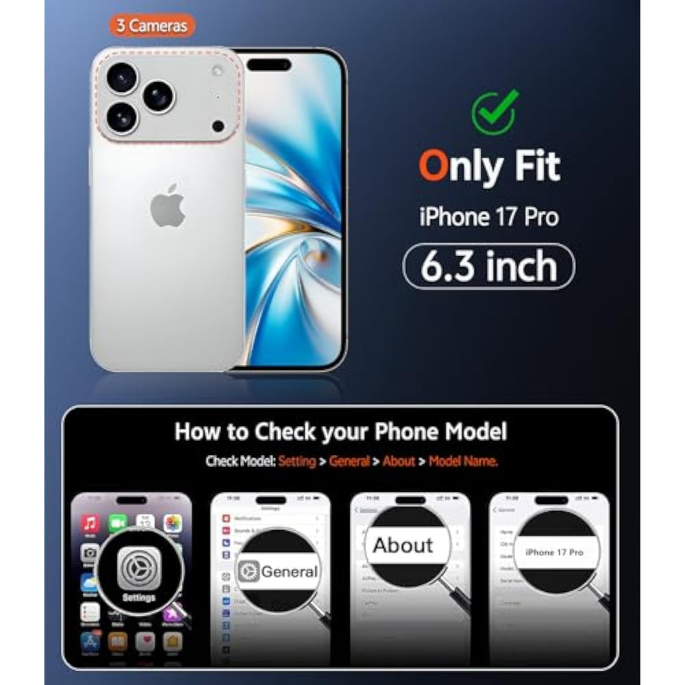 | Strong Magnetic Attraction: Compatible For Magnetic Chargers And Other Qi Wireless Chargers Without Signal Influence. The Iphone 17 Pro Magnetic Case Has Built-In 38 Super N52 Magnets. Its Magnetic Attraction Reaches 2400 Gf | | Crystal Clear Never Yellow: Using High-Grade Bayer'S Ultra-Clear Tpu And Pc Material, Allowing You To Admire The Original Sublime Beauty For Iphone 17 Pro While Won'T Get Oily When Used. The Nano Antioxidant Layer Effectively Resists Stains And Sweat | | 10Ft Military Grade Protection: Passed Military Drop Tested Up To 10 Ft. This Iphone 17 Pro Clear Case Backplane Is Made With Rigid Polycarbonate And Flexible Shockproof Tpu Bumpers Around The Edge And Features 4 Built-In Corner Airbags To Absorb Impact | | Raised Camera Screen Protection: The Tiny Design Of 2.5 Mm Lips Over The Camera, 1.5 Mm Bezels Over The Screen, And 0.5 Mm Raised Corner Lips On The Back Provides Extra And Comprehensive Protection, Even If The Phone Is Dropped, Can Minimize And Reduce Scratches And Bumps On The Phone. Molded Strictly To The Original Phone, All Ports, Lenses, And Side Button Openings Have Been Measured And Calibrated Countless Times, And Each Button Is Sensitive And Easily Accessible | | Compatibility Secure Grip: This Clear Case Is Only Designed For Iphone 17 Pro 6.3 Inch. Precise Cut And Design Allow Easy Access To All Ports, Buttons, Cameras, Sensors, And Other Features. The Clear Case Can Totally Achieve A Great Grip Feeling | |