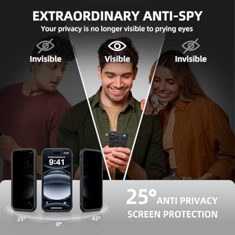 | [Built-In Privacy Screen Protector] For Iphone 17 Pro Max Case With Built-In Privacy Screen Protector That Protects Your Phone Screen And Personal Information Wherever You Go, While Also Providing Protection Against Drops And Scratches | | [Strong Magnetic Attraction] This Magnetic 17 Pro Max Case Equipped With Powerful Magnets For Secure, Lightning-Fast Charging. It Stays Securely Attached Even During Vigorous Movement. Fully Compatible With Magsafe Accessories Like Magnetic Wireless Power Banks, Wallets, Car Mounts, And More | | [360°Full-Body Protection] The 17 Pro Max Phone Case Is Designed With Dual-Layer Glass Front And Back Cover That Provides 360-Degree Full-Body Rugged Protection Against Scratches And Impact Damage. Cushioned Corners Protects Your Phone From Accidental Drops | | [Precise Cutout Camera Control Protection] Accurate And Precise Ports Allow You To Easily Access All The Functions Of 17 Pro Max, Upgraded Camera Control Protection Effectively Prevents Dust And Debris Buildup, Giving You Long-Lasting Cleanliness And Protection | | [Perfect Compatibility Professional Support] This Phone Case Is Only Compatible With Iphone 17 Pro Max 6.9 Inches. For Any Unexpected Issues, Such As Wrong Model, Defective Case Or Damaged Items, Dedicated