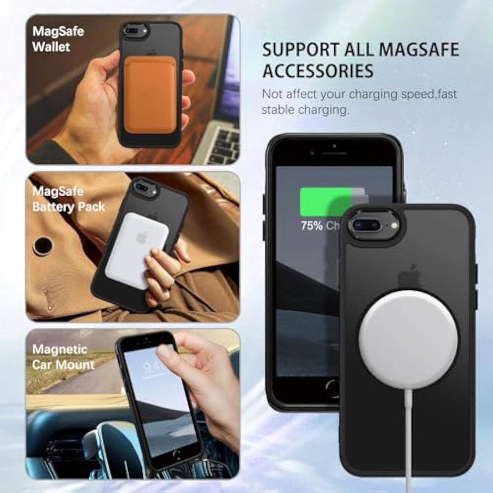 | Iphone 7 Plus/8 Plus Case Magnetic: Magnetic Shockproof Phone Case Compatible With Iphone 7 Plus/8 Plus. Please Confirm Your Phone Model Before Purchg(Without Screen Protector) | | Compatible With Magsafe: Particularly Designed For Iphone 7 Plus/Iphone 8 Plus, The Phone Case Is Compatible With Magsafe Chargers And Other Qi Wireless Chargers Without Signal Influence. Built-In Strong Magnet, The Iphone 7 Plus/8 Plus Phone Case Will Not Fall Off No Matter How It Rotates With Super Adsorption Capacity. The Perfectly Aligned Magnetic Attraction Makes Wireless Charging Faster And More Stable | | Translucent Matte Back: The Matte Back Stays Clean With A Smart Nano Oleophobic Coating Design That Prevents Fingerprints, Watermarks, Oil, And Dust. Meanwhile, The Case For Iphone 7 Plus/8 Plus Also Brings You Excellent Skinny Touch | | Quick Charging Experience: The Perfectly Aligned Magnets Make Wireless Charging Faster And Easier Than Ever Before. When It'S Time To Charge, Just Leave The Case On Your Phone And Snap On Your Charger (Magsafe Compatible) | | Easy Access: Strictly Follow The Real Iphone 7 Plus/8 Plus Phone To Open The Mold Production. Easy Access To All Functions, Ports And Buttons Of Your Phone. Fashionable Phone Case For Girls, Women, Men And Boys | |