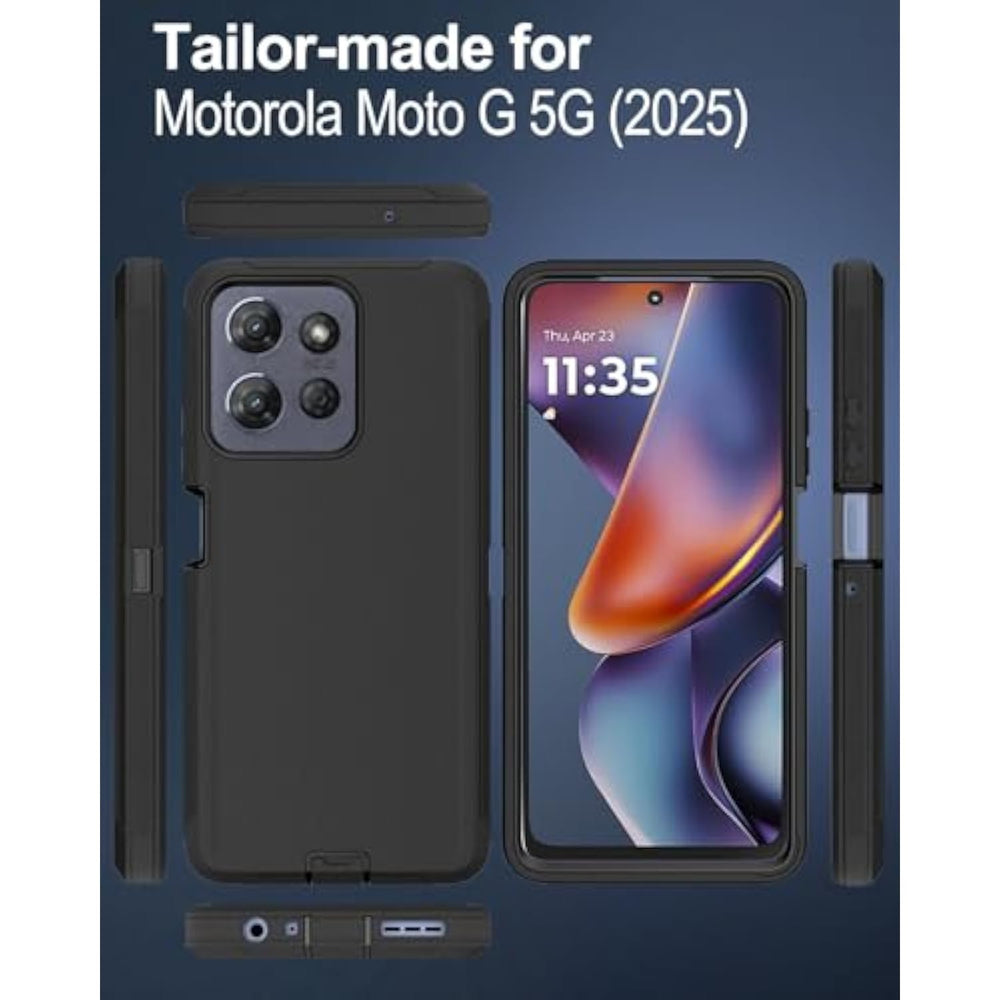 | Compatible With Motorola Moto G 5G(2025): Exclusively Designed Phone Case For Moto G 5G 2025, This Moto G 2025 Case Offers A Flawless Fit; Sturdy And Durable | | Superior Drop Protection: Rigorously Tested, Motorola Moto G 5G 2025 Case Surpasses Military Standards (Mil-Std-810G 516.6), Enduring 16Ft More Accident Drops; Safely Guard Your Phone From Serious Drops, Scrapes And Bumps | | Triple-Layer Defense Precise Cutouts: Snap-Fit Solid Inner Shell, Soft Non-Slip Outer Cover, Slim Yet Tough; For Motorola G 5G 2025 Case Offers Precise Cutouts For Easy Access To All Ports, Buttons And Other Accessories | | Port Protection: Dustproof Port Covers Lock Out Dust, Dirt And Grime; So The Charging Port Stays Clean And Debris Free | | Comfortable Grip And Wear Resistant: The Unique Matte Texture Non-Slip Design On The Back Effectively Blocks Fingerprints And Smudges, Preventing The Phone From Slipping Out Of Your Hands; The Premium Frosted Rubber Material Offers Comfortable Grip And Sturdy Durable Experience | |