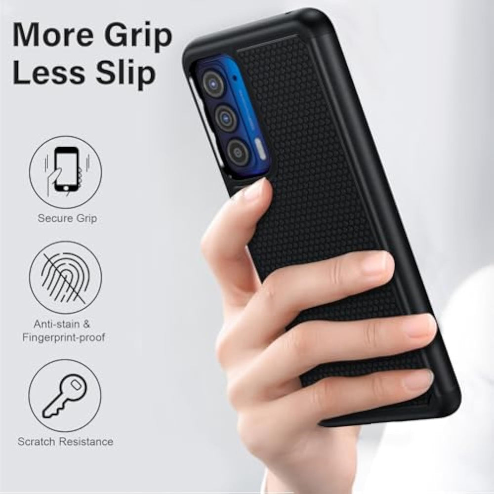 | Only Fit For Motorola Edge 2021: Our Military Shockproof Phone Case Is Specially For Motorola Edge 6.78 Inch 2021 Release. Fits Your Phone Like A Glove | | Heavy Duty Protection: The Dual Layer Rugged Motorola Edge Phone Case Is Composed Of Hard Pc Outer Cover And Soft Rubber Silicone Inner Case, Which Provides A Military Grade Defence | | Non-Slip Texture: Designed With An Anti-Slip Hard Rough Texture To Prevent Your Mobile Phone From Accident Drops, Bumps And Scratches In Daily Use. Anti-Fingerprint And Comfortable Grip Sense Help You To Conquer Your Games | | Drop Protection: Flexible Resilient Tpu Bumper Around 4 Air-Cushioned Corners Works Great In Drop With No Damage. Raised Lips Design Ensures Extra Protection For The Screen And Camera | | Fashion Multiple Color: We Supply Colorful Protective Case For Motorola Edge 2021, Such As Black | Blue | Teal | Purple For All Men Women. Make Your Cell Phone More Attractive. Many Stylish Color Variations To Meet Your Different Aesthetic Preferences | |
