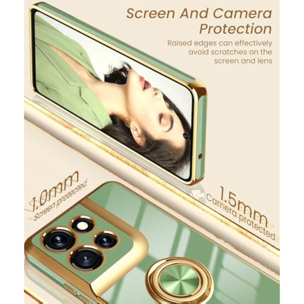 | Compatible With? Plating Rose Gold Edge Protective Case Compatible With Motorola G 5G 2025 Release Only | | Screen Protector*2: Tempered Glass Screen Protector With 9H Hardness Adds A Much-Needed Extra Layer Of Protection For Maximum Protection Against Scratches And Everyday Wear And Tear.(Note: To Prevent White Edges, The Protective Film Is Designed Smaller Than The Phone.) | | Kickstand Design: The 360 Degree Rotatable Built-In Ring Holder Can Be Used As A Stand To Prop Up The Phone, Also Easy To Grip On Your Finger, Provide Added Security When Holding The Phone, And It Is Suitable For Magnetic Car Mount. Note: Due To The Metal Kickstand, This Case Not Compatible With Wireless Charging. | | Gold Plated Design Microfiber Lining: The Edge Of The Shell Bumper And The Edge Of The Camera Are Plated, And The Gold Plating All Around Makes The Phone Full Of Luxury, Slim And Lightweight, Not Bulky, And Easy To Hold.The Inside Has Soft Liner (Soft Velvet) To Protect Your Phone From Scratches. | | Considerate Cutouts And Camera Protection: Phone Case Has Enough Raised Lip Protects The Front Screen And The Back Camera Lens, Marries Up To The Volume Controls, Port, And Camera Perfectly. Slim Thin, Lightweight, Easy To Install And Remove,Very Stylish, Being Simple And Classy. | |