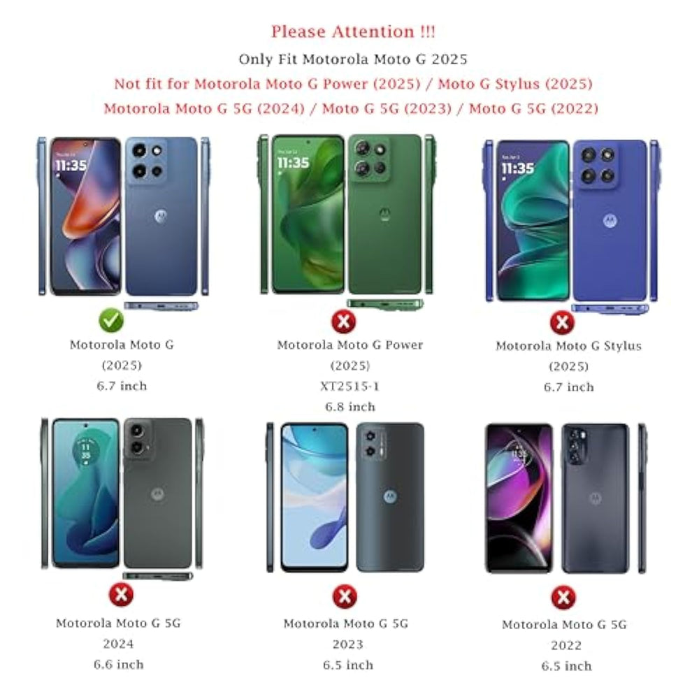 | ?? Two Piece Durable Hybrid Covers: Soft Tpu Inner Cases - Shock Absorbing; Hard Pc Back Outer Shell - Strong Impact Resistant. Double Guard Protection With Reinforced Corner, Specially Designed To Protect Your New Mobile. | | ?? Upgraded Slip Proof Texture Design On Side And Back: Sturdy Armored Phonecase With Antiskid Stripe Prevent Your Smartphone From Unexpected Drop. Also, Simple Classic Stylish | | ?? Enhanced Camera Protectoion Raised Bevel For Scratch Resistant: Each Camera Lens Is 360 Fully Surrounded And Protected. 1.2Mm (0.05 Inch) Lifted Bezel On Screen And 1.6Mm (0.06 Inch) On Camera Lens Can Prevent Daily Scratches When You Put Cellphone Face Down. | | ?? Precious Cutouts Flexible Tactile Buttons: All The Holes Fit Perfect. What'S More, Honeycomb Design Inside For Heat Dissipation And Cooling Breathable To Gurantee Your Telephone Work Normally. Functional Design Vivid Color That Bright Your Mood. Multicolors For Choices, Suitable For Women Men Girls Boys Friends Teenage Kids Youth. | | ?? Only Compatible With Motorola Moto G 2025, Locked Or Unlocked Version,2025,Released By Att, Cricket, Verizon, T-Mobile, Metro, Boost Mobile, Xfinity Mobile, Visible, Spectrum Mobile, U.S. Cellular. Packages: A Smart Phone Basic Cases (Moto G 2025 Case) + 1 Pack Pet Hd Screen Protector (Plastic). | |