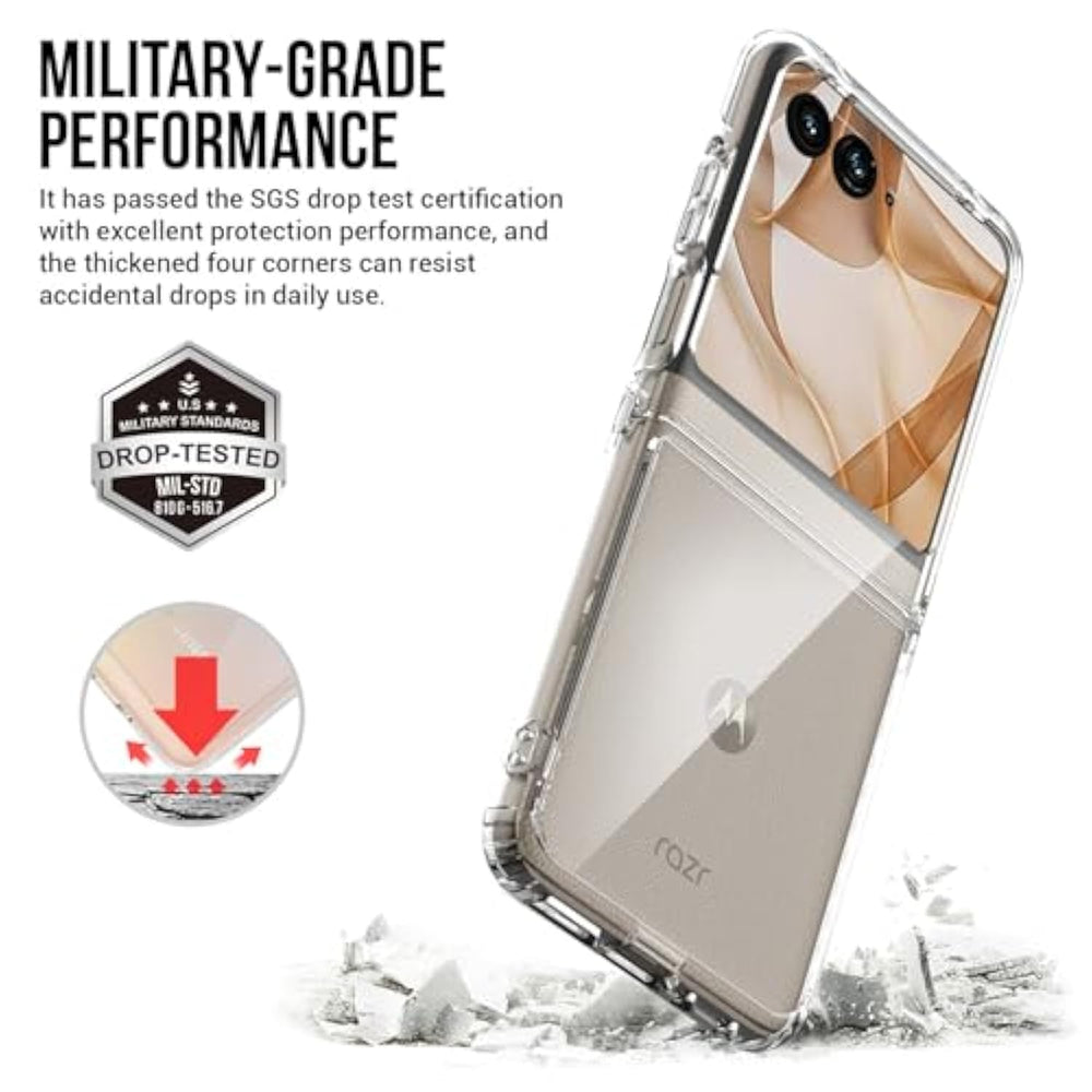 | ?Compatible Model?: Designed Special For Motorola Razr 2024/2025. Crystal Clear And Perfect Fit Phone Without Watermark, Lightweight And Easy To Carry. | | ?Excellent Protection?: Featuring Military Hard Explosion-Proof Pc Back And Thickened Shock-Absorption Flexible Tpu Bumpers, Provides Excellent Anti-Impact And Anti-Scratch Protection For Daily Use. In Addition, This Moto Razr 2024/2025 Case Has 360° Shock-Absorbing Airbag Corners, Which Can Effectively Disperse The Impact Of The 4 Corners And Fully Protect Your Phone From All Directions; Raised Bezels Around The Camera And Screen Help Protect Your Screen And Camera From Surface Friction. | | ?Precise Cutout?: All Buttons And Jacks Are Designed With Humanity To Avoid Frequent Disassembly. The Perfect Speaker, Camera, And Charging Hole Cutouts On The Case Allow You To Easily Use All Functions And Charge Your Phone Conveniently Without Removing The Case, For Motorola Razr 2024/2025 Case. | | ?Slim Fit And Ultra Clear?: Keeps Your Phone Slim And Stylish, With The Original Beauty Of Your Phone. | | ?What You Get?:If You Have Any Displeasure With Our Products Or Services, Please Feel Free To