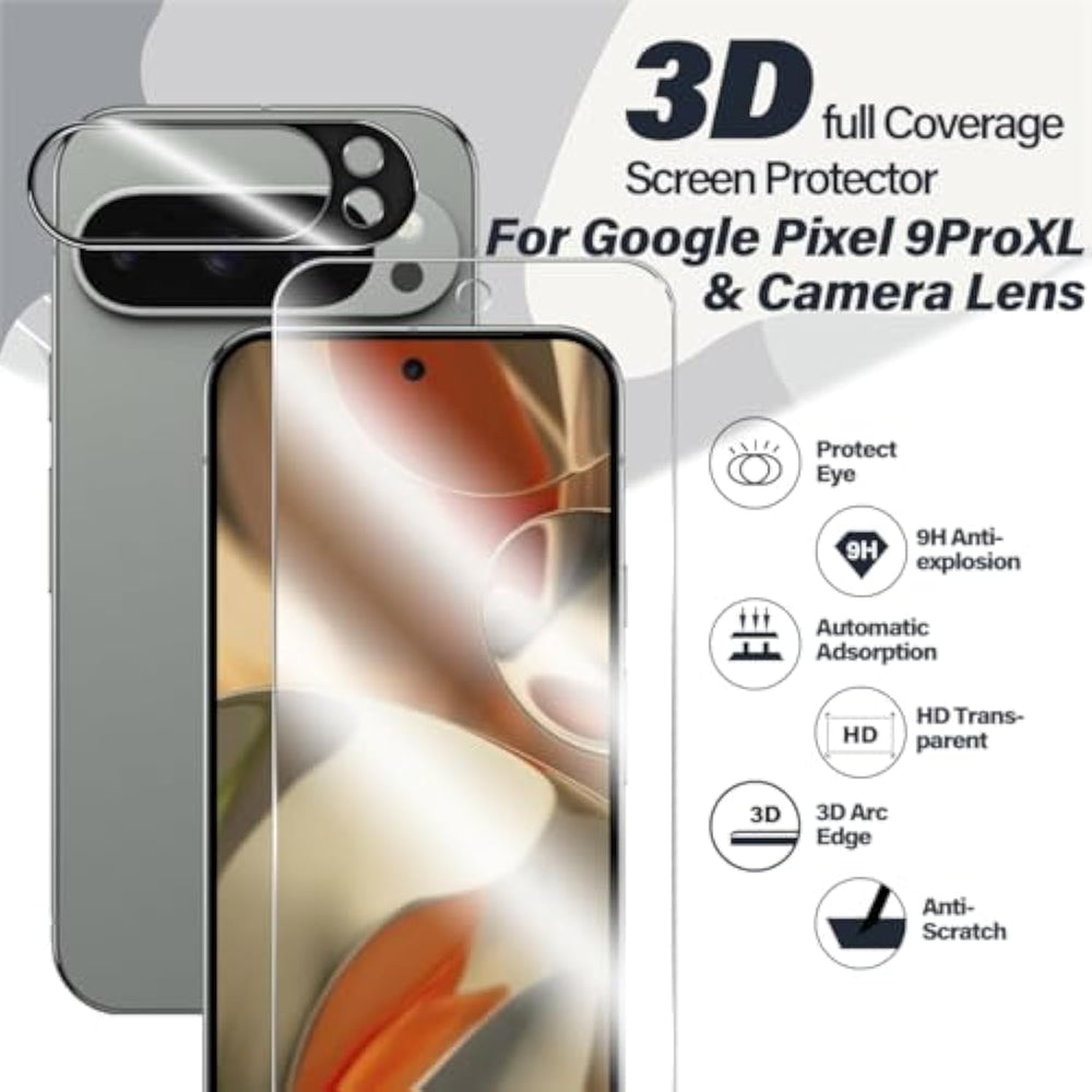 | [Perfect Fit For Pixel 9 Pro Xl 5G] : Exclusively Designed For Pixel 9 Pro Xl 5G With Precise Cutouts, Compatible With Most Pixel 9 Pro Xl 5G Cases And Covers. | | [Perfect Protection]: Through The Industry High Hardness 9H High Quality Tempered Glass, Three Times Stronger Than Ordinary Pet Film. So Strong Enough To Prevent Scratches, Scratches And Rupture. Precise Laser Cutting Size Provides Maximum Protection For The Entire Touchscreen Surface Of Your Pixel 9 Pro Xl 5G.(If You Cannot Use The Fingerprint To Unlock After Installation, Reset The Fingerprint To Unlock. ) | | [No Rainbow Effect] : Upgraded All-Clear Adhesive, Not Only On The Edges, But Also The Touchscreen Area, Sticking Firmly On Your Phone To Maintain The Original Screen Touch Sensitivity. You Won'T See The Rainbow Effect As Other Screen Protectors May Have On The Phone Screen. | | [Simple Installation]: Bubble-Free, Easy Installation, And Perfect Fit. Maintain Longevity And Durability While Preventing The Screen Protector From Peeling Off. | | [What You Get]: 2 X Tempered Glass Screen Protective Film, 2 X Camera Lens Screen Protectors, 2 X Equipment Cleaning Wipe, 2 X Dust Stickers. If The Product Has A Problem, Please