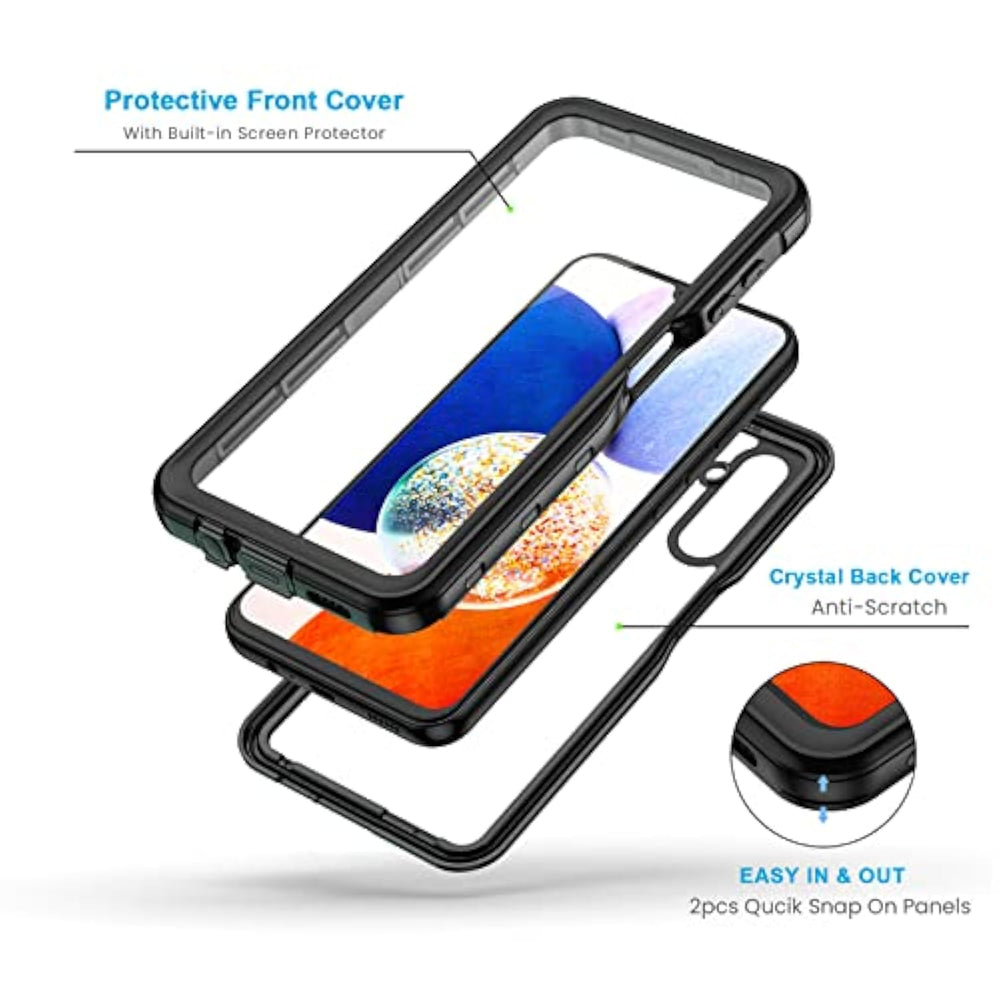 | Ip68 Certified Waterproof : Perfect Waterproof Case For Samsung Galaxy A14 5G (6.6 Inch), Extreme Safe Even After 1000 Times Test Of Using Underwater 6.6Ft For 1 Hour | | Full Body Protection : Waterproof, Shockproof, Dustproof, Camera Protection, Full Sealed Design Exceeds Military Standard To Adapt Any Outdoor Activities; With A Phone Strap For Convenient Carrying | | High Touch Responsive : Built-In Hd Plastic Screen Protector Prevents Scratch, Damage And Dirt, Also Won'T Affect The Touch Sensitivity; Clear Back Cover Will Show Off The Beauty Of Your Galaxy A14 5G | | Compact And Lightweight : Tpu Material With Hard Plastic Frame, Makes Your Phone Lightweight And Tough; Slim Body (17.6 *8.6 *1.4 Cm) Doesn'T Add Much To The Size Of Your Galaxy A14 5G | | Easy Installation : Two Covers (Front/Back) Snap On Design Makes It Fast And Easy To Install Or Take Off In Seconds, Suitable For Daily Use | |