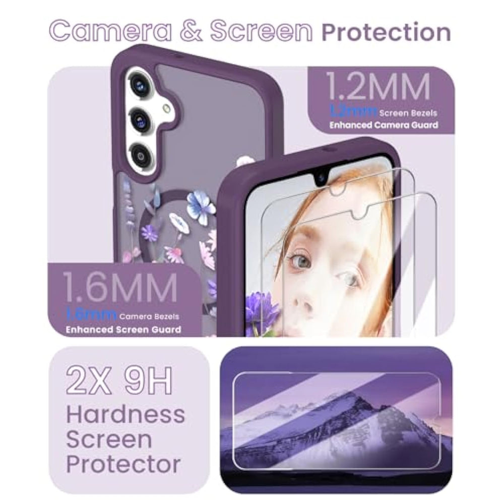 | Compatible Models: This Magnetic Skin-Friendly Matte Floral Case Is Only Compatible With Samsung Galaxy A16 5G 6.7", Also Comes With 2Pcs Tempered Glass Screen Protector Can Not Compatible With Any Other Cell Phones. | | Matte Texture Silky Feel: Crafted With Flexible Tpu Frame And Hard Pc Back With Matte Coating For Premium Touch. Non-Slip, Anti-Fingerprint, Easy To Clean. Supports Wireless Charging And Available In Various Colors To Match Your Style. | | Chic Long-Lasting Patterns: Made With A Unique Printing Technique, Clear And Stylish Floral Pattern Designed For Girls Women, Colorful, Never Fade, Makes Your Phone Different. | | Raised Screen Camera Protection: Offers An Enhanced Safeguard With A 0.15-Inch Raised Bezel Around The Camera And Screen. You Don'T Need To Worry About Scratching The Camera And Screen When Using It In Daily Life. | | Slim Design Flawless Compatibility: Airbag Protection And Ultra-Light Materials. Precise Cutouts For Easy Button Access. Slim Profile Fits Easily In Pockets And Compatible With Magsafe And Wireless Chargers / Car Mounts. | |