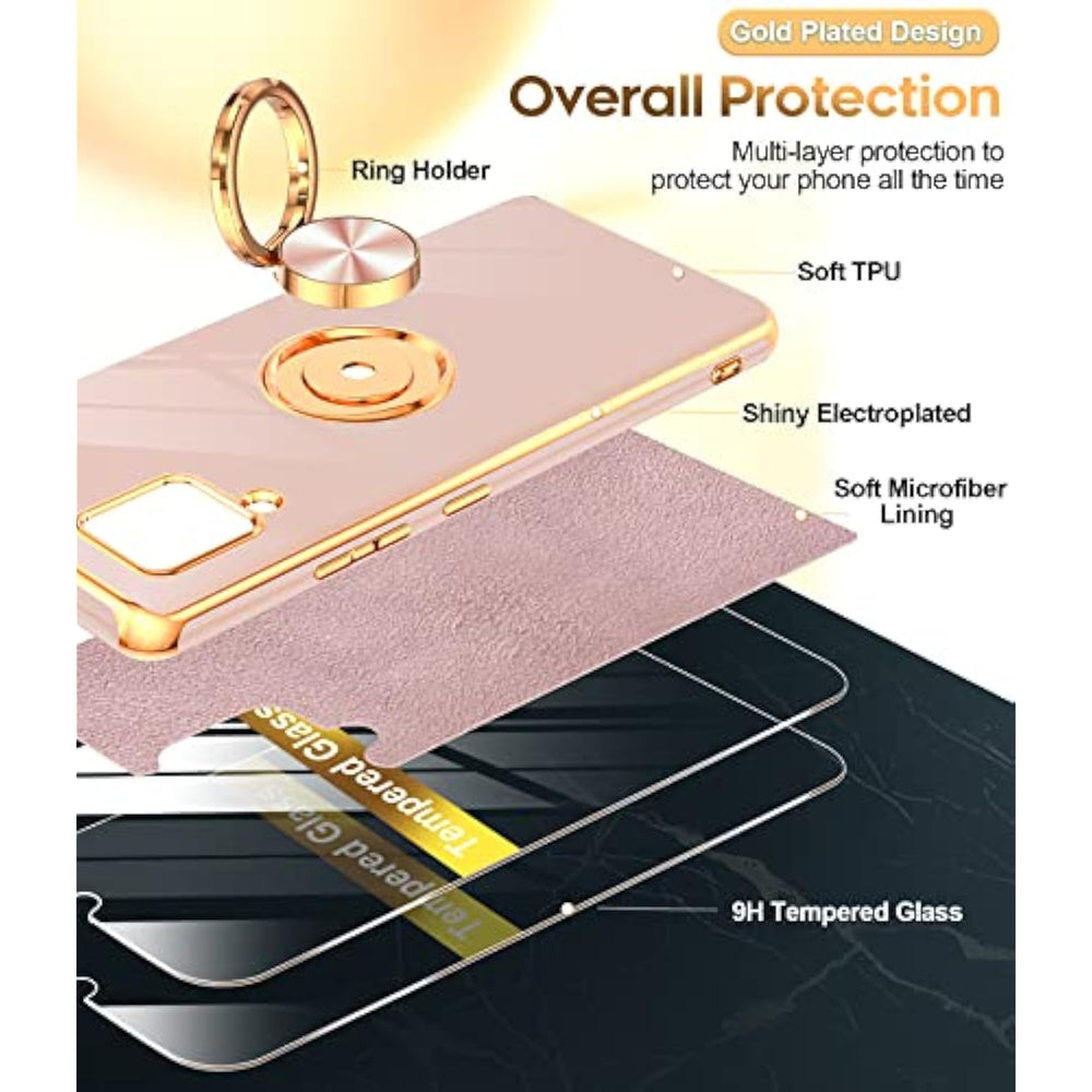 | Compatible With: This Case Is Specially Designed For Samsung Galaxy A42 5G | | Kickstand Design: The 360° Rotatable Built-In Ring Stand Makes It Easy To Hold The Phone. Works Well As A Stand To Prop Up Your Phone And Gives You The Convenience Watch Videos Hands-Free With Desired Comfort And Stability. It Is Suitable For Car Magnetic Mount | | Rose Gold Plated Design: The Edge Of The Shell Bumper And The Edge Of The Camera Are Rose Gold Plated, Making The Phone Full Of Luxury, Stylish And Timeless. Slim And Lightweight, Not Bulky, And Easy To Hold. Not Compatible With Wireless Charging | | Screen Protector: 2 Pack Tempered Glass Screen Protector With 9H Hardness Adds A Needed Extra Layer Of Protection For Protection Against Scratches And Everyday Wear And Tear | | Tpu Material: The Phone Cover Is Made Of Tpu Material, Soft, Smooth, Durable, And Easy To Clean. The Thin Case Ensures Lightweight Portability And Drop Resistance. Anti-Fingerprint And Anti-Scratch To Keep The Phone As Bright | |