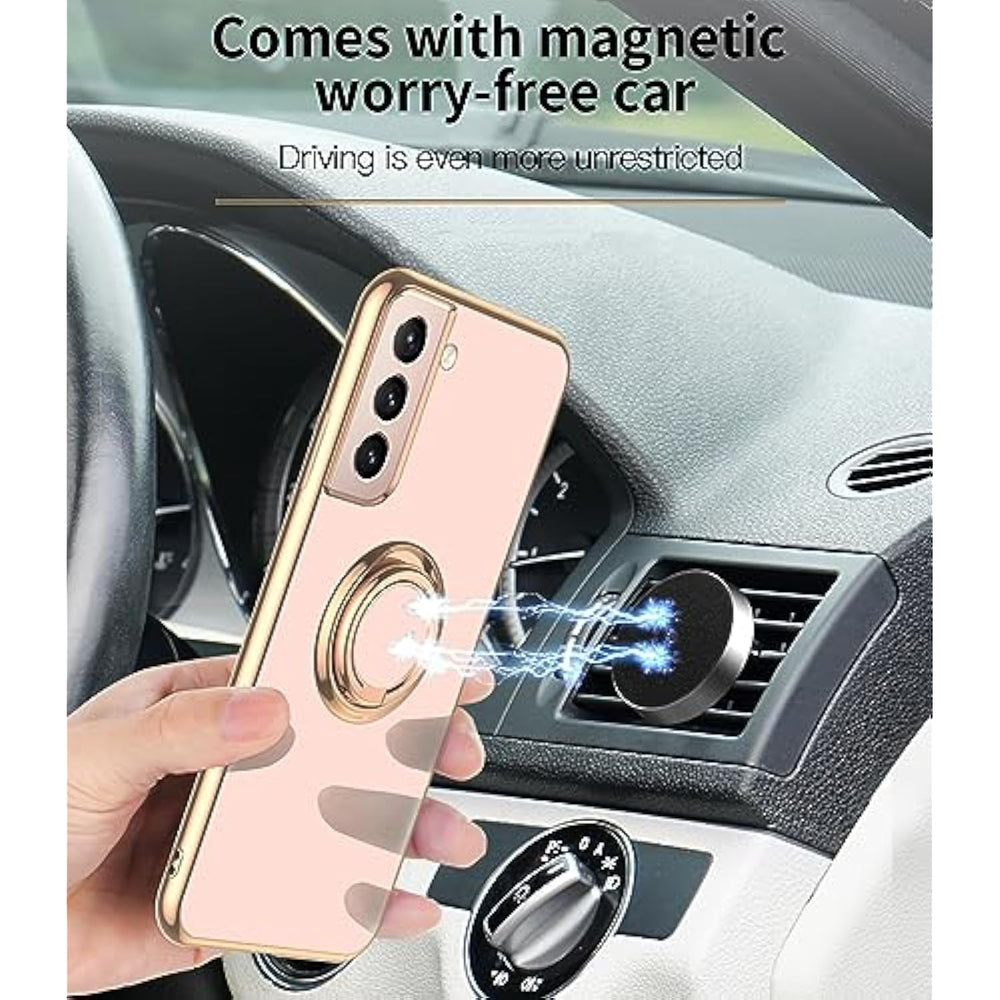 | ?Compatible?Only Designed For Samsung Galaxy S21. Come With 2 Screen Protector. Not Support Wireless Charging. | | ?Design Material? Electroplated Shiny Gold Edge Design Makes Your Galaxy S21 Luxury Shiny And Beauty. Made Of High-Quality Tpu To Protect Against Scratches Or Impacts. Soft Felt Lining Further Inside Protects The Phone From Scratches Or Abrasions. | | ?Magnetic Kickstand?Built-In 360°Rotation, 180° Fold Convenient Ring Holder And Magnetic Car Mount Supported, Prevents The Phone From Accidentally Falling, Free Your Hands To Watch Videos And Movies. | | ?Full Body Protection? Comes With Screen Tempered Film. Raised Bezels And Edges Over The Camera And Screen, It Will Protect Cameras And Screen From Scratches And Damages When You Put This Case Down Or Up. | | ?Perfect Fit?Easy To Put On And Take Off. Precise Cutouts Perfect For All Ports, Buttons, Speaker And Camera. Tactile Button Covers With Responsive Touch And Easy Access. | |