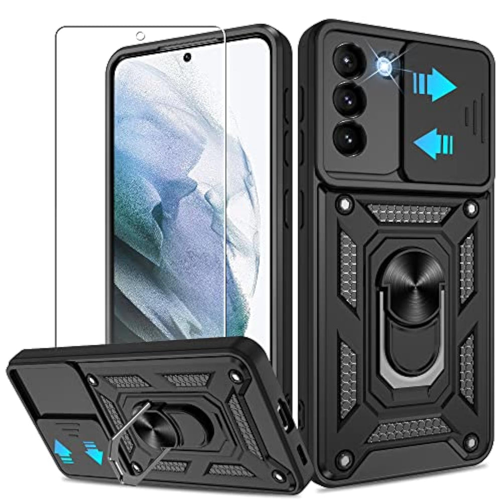 | ???Military Shockproof Protection?Designed For Samsung Galaxy S21 ,Slide Camera Cover Design Protects And Hides The Camera Perfectly. 4 Highly Strength Shockproof Corners And Raised Lens And Screen Lips Keep Your Phone From Scratching And Breaking When Dropped. It'S A Good Choice For Sports And Outdoor Activities. | | ???360° Metal Rotating Kickstand Ring?Equipped With Premium Metal Ring Kickstand, Designed For Samsung Galaxy S21 Case Offers Multiple Adjustable Angles (360-Degree Horizontal And 180-Degree Vertical). Built In Kickstand Holds Your Phone At Optimal Viewing Angles For Movies Videos And Free Your Hands When Watching Films, Playing Games Or Online Chatting. | | ???Sliding Camera Cover?Unique Camera Slide Cover Design For Samsung Galaxy S21 Case, Smooth Slide. Just Slide Left And Right To Protect/Use The Camera Lens. No Need To Use Extra Lens Protective Protector. | | ???Complete Access?Precise Cutouts For Improved Access To All Ports, Buttons, Cameras, Speakers, And Mics Ensure Quick Access And Feedback To Samsung Galaxy S21. | | ??? Quality Service? Package Includes :1X Samsung Galaxy S21 Case. And Free Hd Screen Protector.???The Best Service And Solution Will Be Provided For You By If You Have Any Problem Of This Product, Please