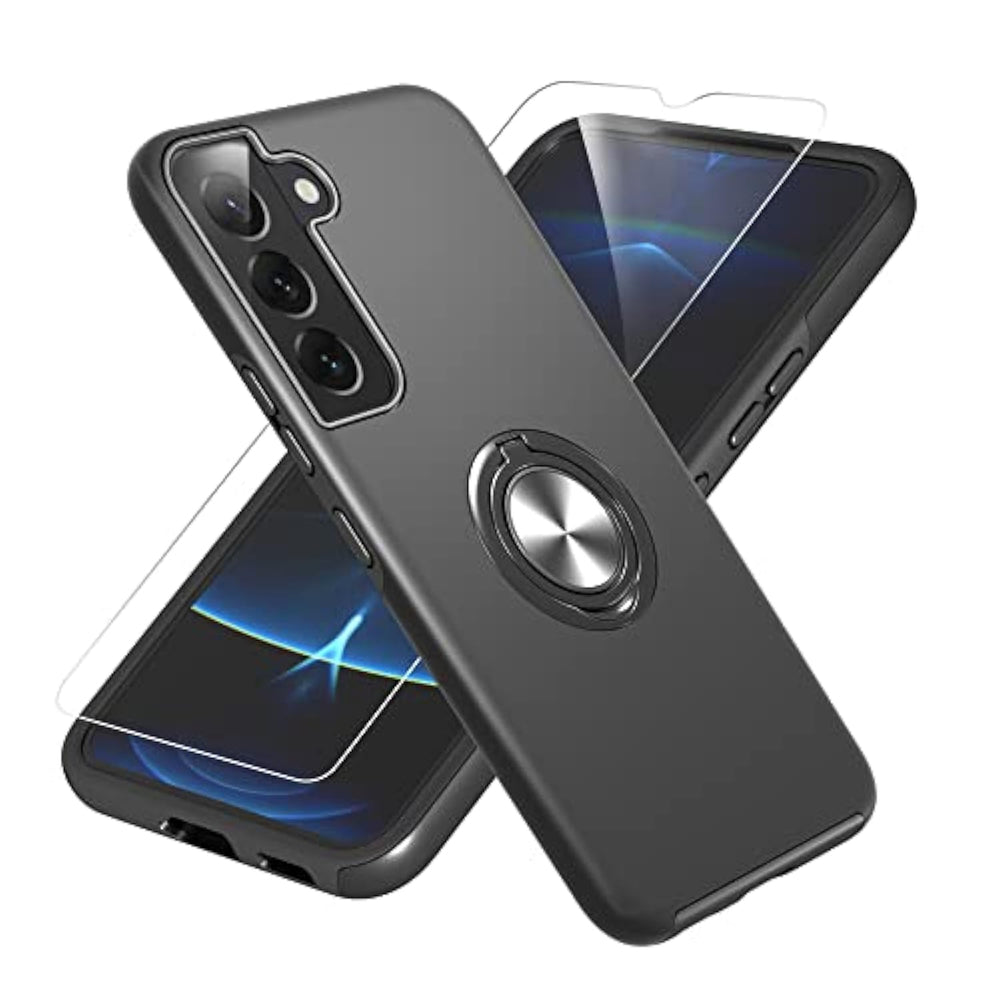 | [Compatible With]: Specially Designed For Samsung Galaxy S22 (6.1 Inch). No Fit For Samsung Galaxy S22 Plus/S22 Ultra. Also Come With Hd Screen Protector | | [360° Upgraded Invisible Kickstand Design]:Humanized Design, Built-In Folded Invisible Bracket, Kickstand Is Perfect For Viewing, For Hands-Free Movie Viewing, Video, Pictures, Etc.Metal Ring Can Release Your Hand To Ensure A Phone Safe. Magnet Can Put On Navigation Holder When You Drive A Car. To Give You A Safer And More Convenient Trip. (Not Includes The Magnetic Car Mount Holder) | | [Perfect Protection]: Unique Edge Tpu Is Combined With The Built-In Pc Can Provide Shockproof And Heavy Duty Protection Against Scratches. Military-Grade Protection With Air-Cushion Technology For All Corners. And All Around Protection For Your Device With A Slim Design | | [Perfect Fit]: All Buttons And Interface User-Friendly Design To Avoid Frequent Disassembly. And The Case Perfect Cutouts For Speakers, Camera And Charging Hole Allow You To Easy Access To All Features And Convenient For Charging Your Phone Without Take Off The Case | | []: Our Products Come With 60 Days . If You Have Any Questions Or Anything You Feel Unsatisfied, Please Feel Free To