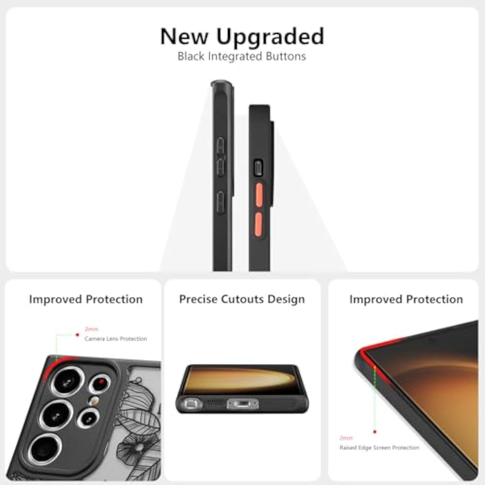 | ?Stylish Print Design?The Unique And Stylish 3D Flower Printed Pattern Design Makes Your Phone More Attractive. Black Rose Phone Case Is So Cool. | | ?Slim Precise Cutouts?This For Slim Samsung Galaxy S22 Ultra Rose Case Still Makes Your Phone Fit Easily In Your Pocket. Precise Cutouts Make It Easy To Access All The Buttons,Controls And Charging Ports. | | ?Drop Protection?4 Corners Effectively Absorb Shocks. Raised Bezels Can Protect Screen And Camera Lens From Directly