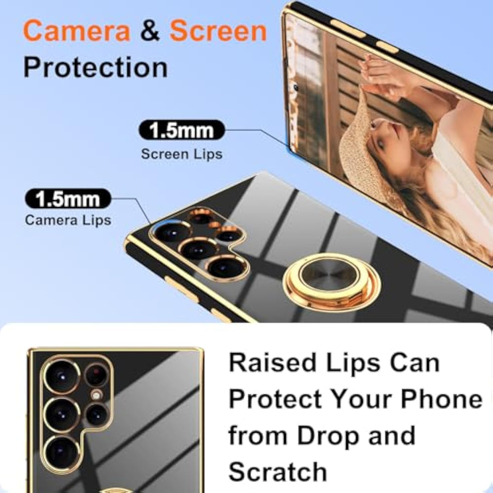 | Compatible: The Glitter Case Designed For Sansung Galaxy S22 Ultra Phone Only; Not Fit For Galaxy S22 Plus, Galaxy S22. Please Confirm Your Phone Model Before Purchase. Note: Not Compatible With Wireless Charging | | Kickstand Design: Built-In 360° Rotating Magnetic Ring Holder Ensures A Secure Grip, Functioning As A Stable Stand For Hands-Free Video Viewing. Galaxy S22 Ultra Case Is Also Compatible With Magnetic Car Mounts, Allowing For Easy In-Car Use | | Gold Plated Design: The S22 Ultra Case Features A Rose Gold-Plated Edge Design, Adding A Touch Of Luxury And Elegance To Your Device. The Interior Is Lined With Soft Padding To Protect The Back Of Your Phone From Scratches | | Tpu Material: The Samsung Galaxy S22 Ultra Case Is Made Of Tpu Material, Soft, Smooth, Durable And Easy To Clean. It Is Ultra-Thin, Lightweight, Easy To Install And Remove, Very Stylish, Simple Yet Elegant | | 360° Full Protection: The Raised Bezel And Edges Of The Camera And Screen Provide 360° Of Rugged Protection. Samsung S22 Ultra Case Is Precise Cutouts So That Your Can Enjoy Easy For Access To All Ports, Buttons, Cameras, Speakers, And Mics | |