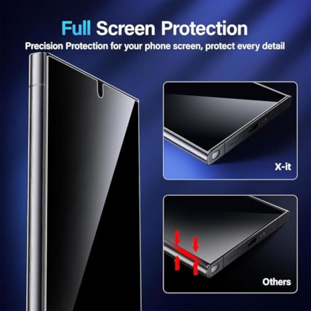 | ??26-Degree Privacy Protection? Xit Samsung Galaxy S22 Ultra Privacy Screen Protector Employs Louver Optical Tech For A 26° Privacy Shield. The Screen Is Only Visible To Those Within 26°, Ensuring A Clear Front View While Preventing Side Glances. Whether In Private Gatherings, Subways, Elevators, Or Other Public Places, It Effectively Protects Your Screen Activity From Prying Eyes, Keeping Your Privacy Secure At All Times. Perfect For Those Who Value Their Privacy. | | ??Easy Fit Kit Zero Bubble? 'S 3Rd Generation Upgraded Installation Kit Improves The Installation Process. Featuring Automatic Alignment And Dust Removal Functions, The Application Of The S22 Ultra Screen Protector Privacy Is A Breeze. It Ensures Better Adherence To The Screen Protector, Significantly Reducing The Occurrence Of Bubbles And Increasing The Success Rate Of Installation. | | ??Fingerprint Unlock Sensitive Touch?Xit Privacy Screen Samsung S22 Ultra Utilizes Upgraded Ultrasonic Unlocking Glue. Just Re-Scan Your Fingerprint After Applying, You Can Achieve Extremely Fast Unlocking In 1S. It Also Maintains True Tactility, Ensuring An Ultimate Touchscreen Experience. In Addition, It Features Advanced Electroplated Oleophobic Coating, Which Can Effectively Prevent Fingerprints And Sweat From Residue, Greatly Reducing Screen Smudges And Fingerprint Marks. | | ?[High Hardness High Transparency] Microcrystalline Ceramic Film Is A Coating Composed Of Silicate Ceramic Material, The Hardness Reaches More Than 9H, Which Is Several Times Higher Than Ordinary Glass, Which Can Effectively Prevent All Kinds Of Scratches And Collision Damages, Reduce The Light Reflection And Refraction, Ensure High Definition Vision, Reduce The Damage Of Blue Light, And Effectively Safeguard The Vision Privacy Screen Galaxy S22 Ultra | | ?[Film Pod Reusable] Samsung Galaxy S22 Ultra Privacy Screen Protector Mounting Frame Is Easy To Use, Installing And Reinstalling Screen Protector Is As Easy As A Click, You Can Flexibly Remove And Reuse The Protective Film Frame After Applying The Protective Film. Membrane Frame Don'T Throw, Split Film Frame Can Be Reused, You Can Directly Buy Individual Screen Protector In The Future, We Provide Single Selling Film Service. | | ??Auto-Healing?Galaxy S22 Ultra Screen Protector Has A Self-Healing Function That Helps To Automati