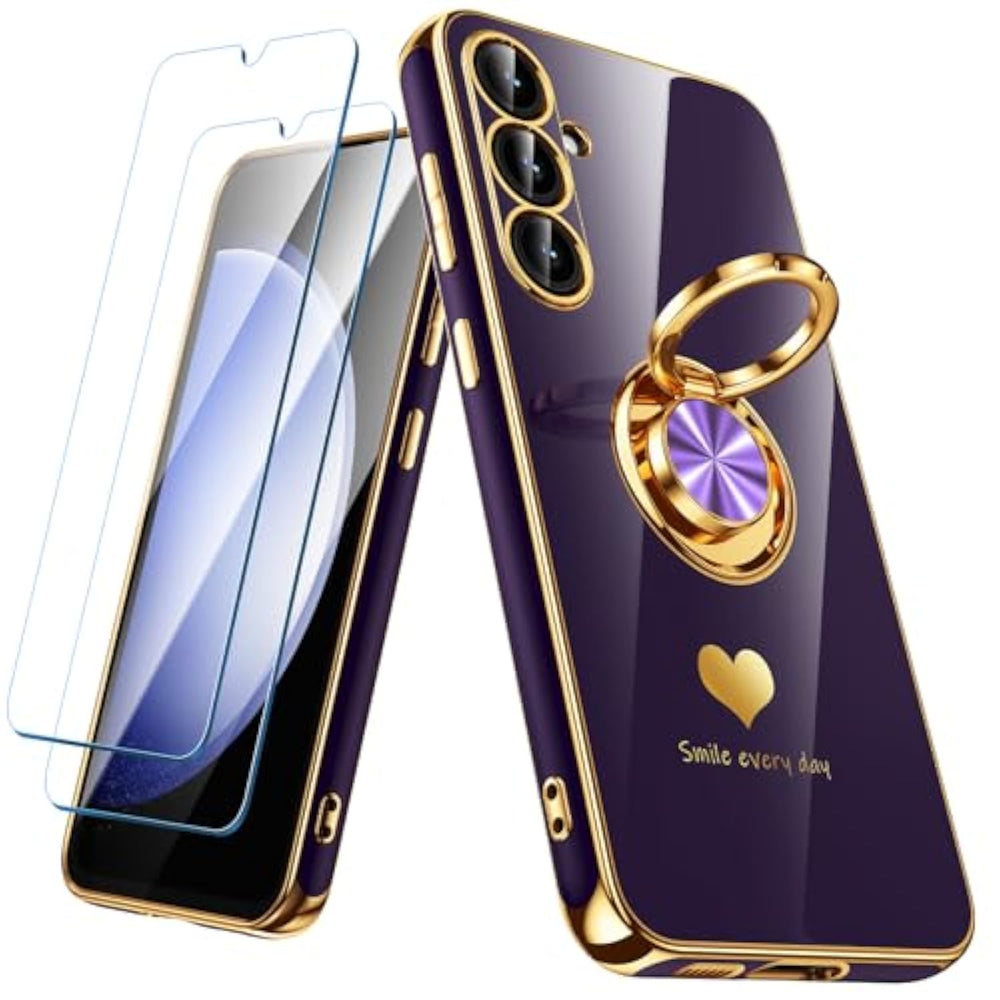 ![For Samsung Galaxy S23 Fe 5G Case With 2 Pack Screen Protector, 360° Rotatable Ring Holder [Luxury Hearts Pattern] Plating Gold Edge Slim Soft Phone Cover Case For Galaxy S23 Fe - Purple](http://globaleparts.com/cdn/shop/files/51WnkOb0woL._US1500_compact.jpg?v=1759857817)