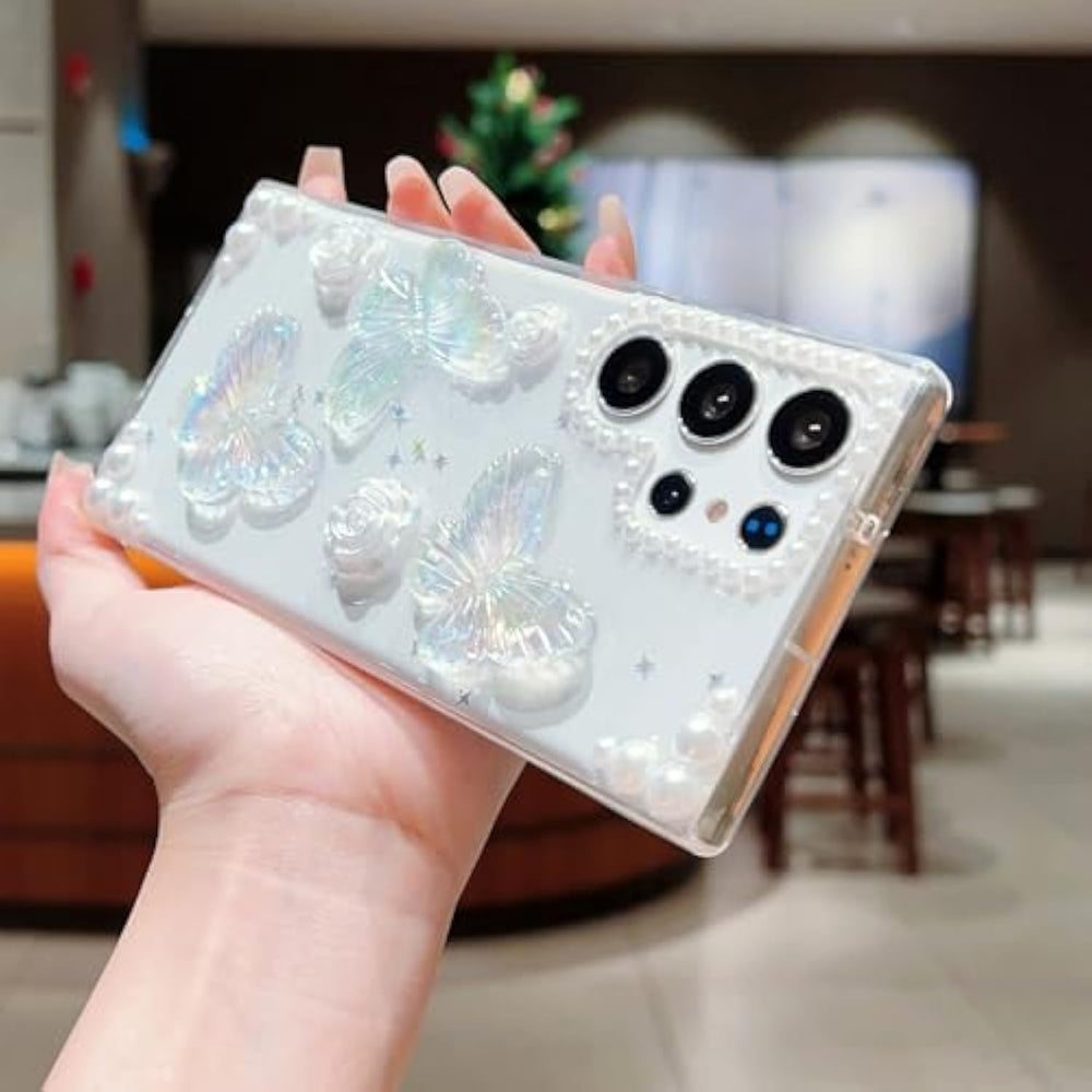 | ??Compatible With Samsung Galaxy S23 Ultra?The Luxury Glitter Bling Sparkly Shiny Laser Butterfly Floral Flowers Crystal Pearl With Pearl Wrist Strap Chain Elegant Aesthetic Soft Tpu Bumper Shockproof Protective Phone Case Is Only Designed For Samsung Galaxy S23 Ultra 5G 6.8 Inch (2023),Not Fit For Other Phone Models.Precise Cutouts Allow Easy Access To All Ports And Buttons. | | ??Unique 3D Butterfly?Decorated With Iridescent Laser 3D Butterfly, Aesthetic Floral Flowers, Sparkling Pearl, Makes Your Phone Look More Unique And Fashion, It’S Really Eye-Catching When Shining In The Light.The Glitter Pearl Camera Lens Not Only Protect The Lens But Also Personalized Decorations. | | ??Clear Glitter Sparkle Design ?The Glitter Case Is Designed To Be Transparent With Sparkling Crystals, Creating A Shiny, Attractive, And Stylish Look. The Embedded Crystal Glitter Will Never Peel Off And Stay Shiny. | | ?? Materials?Made Of Tpu Bumper+Pc Back Material, The Case Is Smooth, And Easy To Clean. It Keeps The Case Long-Lasting And It Will Not Turn Yellow Over Time. | | ??Glitter Pearl Hand Bracelet Chain?With Glitter Butterfly Cystal Pearl Gems Portable Hand Strap Loop Lanyard , It Prevents Falling And Make Sure To Operate Phone Safely. | |