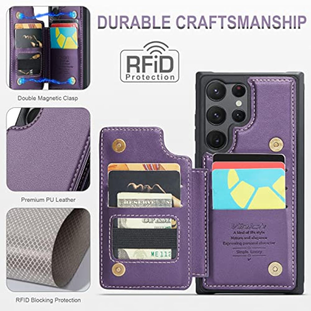 | For Samsung Galaxy S23 Ultra Case Wallet: Made Of High Quality Durable Pu Leather And Soft Tpu Inner Shell, The Craftsmanship Phone Wallet Case Is Compatible With Galaxy S23 Ultra; The Case For Samsung S23 Ultra Will Make Your Work And Life More Convenient While Protecting Your Phone | | For Samsung S23 Ultra Case With Card Holder: The For Galaxy S23 Ultra Case Is Designed With Card Slots For Drivers License, Insurance Cards, Door Access Card, Debit Cards, Etc; The Case Is Easy To Hold And Remove, So You Don’T Need To Take Bulky Purse To Outdoor; This Case For S23 Ultra Is Suitable For All Ages Of Women Men | | For Galaxy S23 Ultra Case With Kickstand: Built In Double Magnetic Clasp Of Wallet Case, It Can Hold Your Phone Stably; The Hands-Free Kickstand Flip Holster Allows Your Phone Standing Independently, Which Is Perfect For Video