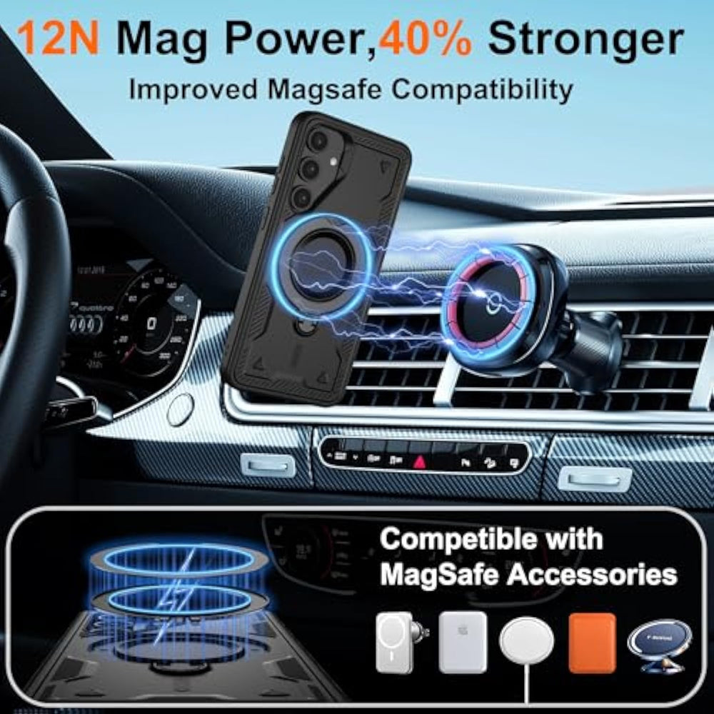 | Compatible With:Specially Designed For Samsung Galaxy S24 Fe Case. Package Includes Hd Screen Protector *2(Plastic),A Prefect Case That Integrates Magnets, A 360°Spin Kickstand Also As A Ring Holder, Military-Grade Protection,Compatible With Magsafe Wireless Charging | | Strong Magnetic Attraction: Compatible For Magnetic Chargers And Other Qi Wireless Chargers Without Signal Interference. And It Also Supports Other Mag-Safe Devices.Our Phone Cover Has N52 Magnets Built In.Its Magnetic Attraction Is Far More Than 8X That Of Others, So It Won'T Fall Off No Matter How You Use The Mag-Safe Magnetic Suction Function In Your Daily Life, It Will Not Fall Of | | Built-In Magnetic Foldable Invisible Stand?This Samsung Galaxy S24 Fe Case With Magnetic Folable Ring Stand Holder; Provide A Adjustable Vertical And Horizontal Stand Style, Meet All Your Needs | | 14Ft Military Grade Drop Protection: Shockproof Tpu Is Combined With The Built-In Hard Pc To Protect Your Galaxy S24 Fe, And Features 4 Built-In Corner Airbags To Absorb Impact, Which Can Protect Your Phone From Accidental Drops, Bumps, And Scratches.This Galaxy S24 Fe Case Frosted Surface Provides A Comfortable Hand Feel, And The Nano-Antioxidant Layer Can Effectively Prevent Stains And Scratches | | What You Get:Package Includes :1X Galaxy S24 Fe Case And 2×Hd Screen Protector. If You Have Any Questions Please