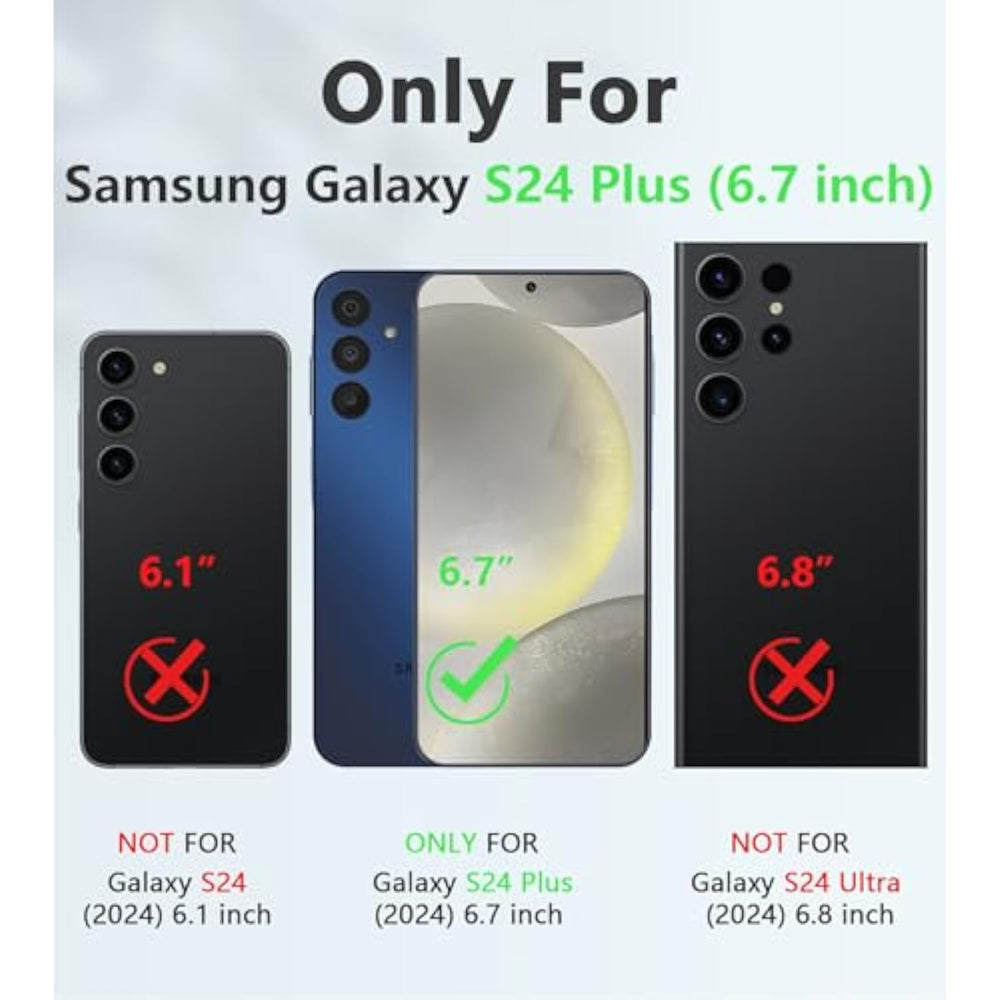 | Suit For S24 Plus/S24+ 6.7 Inch : Not For S24 6.2 Inch. Precise Cutouts Ensures Full Access To All Ports And Buttons. Full Body Protection Designed For The Samsung Galaxy S24 Plus Released In 2024. Won’T Fit Any Other Phone Models. | | Upgraded Sliding Camera Protection Cover: Unique Camera Slide Designing Protects Your Galaxy S24 Plus Phone Camera Lens Against Scratches And Collision. Both Sides Of The Sliding Cover Are Lockable, So It Protects The Phone Camera Even If You Are Working Outdoors Or Outdoors. When You Want To Take Pictures, Just Slide It And You Have A Clear Camera Lens | | Kickstand Design: The Stand Is Upgraded To Be More Durable. Made Of New Material, It Can Support Higher Usage Frequency. The Folded Kickstand Forms A Stable Triangular Structure With The Phone Cover After Opening. You Can Place It On A Horizontal And Vertical Surface, Freeing Your Hands To Do Whatever You Want | | Military Grade Drop Protection: This For S24 Plus 5G Phone Case Is Made Of Pc And Tpu Materials Hybrid. The Outer Case Of The Mobile Phone Is Made Of Hard Pc Material To Keep The Armor Protection. The Interior Of The Mobile Phone Cover Is Flexible Tpu Material, Which Absorbs The Energy Brought By The Collision And Shock | | Non-Slip Stripes Design: Matte Texture Design And Enhanced Non-Slip Stripes On Both Sides Of The Case Ensure Better Grip And Comfortable Hold, Effectively Increase Friction. No Worry About For S24 Plus Case Slipping Off While You’Re Running Or Doing Other Outdoor Activities | |