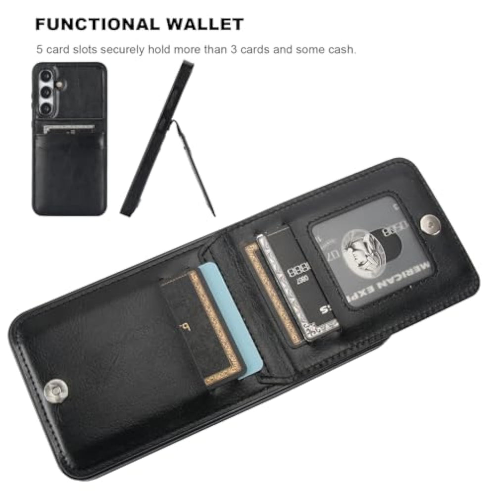 | [Compatibility]: Only Compatible With Samsung Galaxy S24 Plus 6.7 Inch Display (2024 New Released). | | [Premium Leather]: High-Quality Pu Leather (Including The Side) Feels Softer And Looks More Comfortable. | | [Functional Wallet]: 4 Card Slots Securely Hold More Than 3 Cards And Some Cash(Ids, Debit Cards, Credit Cards, Drivers License, Etc.) Without Taking Your Wallet Outside. Magnetic Buttons Can Keep Your Case Slim And Stylish And Keep Your Cash And Cards Secure. | | [Convenient Kickstand]: The Kickstand Function Can Be Converted Into A Multi-Angle Comfortable View For Reading, Watching Videos, Browsing The Web, And Face-To-Face Chatting With Friends Without Purchg An Extra Bracket. | | [Full-Frame Protection]: 1.10Mm Raised Buffer Edge Prevents Your Phone'S Flat Surfaces From Scratching, The Four Corners Also Protect Your Phone From Dropping And Shocking. | |