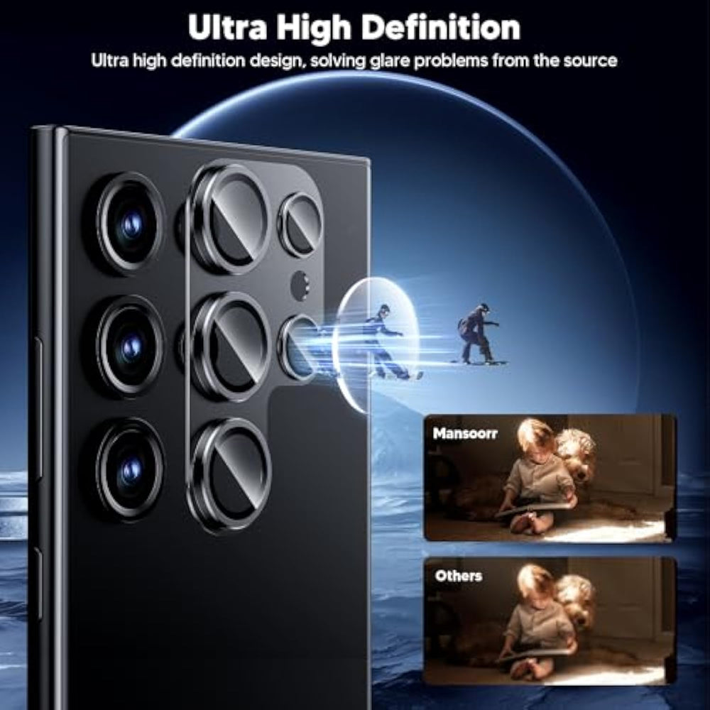 | For Samsung Galaxy S24 Ultra: This Camera Lens Protector Made Of Upgraded Aluminum Alloy, Plus An Electroplated Sapphire Super Hard Af Film Camera Protector Screen, Hd Clarity, Durable With Elegant Texture. Accessories Design For Galaxy S24 Ultra 6.8 Inch. | | Powerful Adsorption Original Match: For S24 Ultra Camera Lens Protector Use Upgraded Nano-Waterproof Adhesive Layer With Reinforced Glue, No Easily To Fall Off. Lightweight 1:1 Slim Thin Matte Alloy Original Design, Reflects Fascinatingly Makes It Personalized And Decorated Accessories. Perfectly Matches Your Phone While Provide Fully Protection. | | Galaxy Original Photo: Equipped With Ar Anti-Reflection Technology, Which Fundamentally Solves The Problem Of Glare.Doesn'T Effect Taking Photo At Night Even At Night Using Flash. More Clearer And More Focused. | | Full Coverage Protection: Military-Grade Drops Protection Anti-Scratch, Shockproof. Protect Your Camera Lens From Dust,Damage And Scratches.Give Featuring Maximum Protection From Your Phone Camera From Scratches, Scrapes,And Bumps. | | Easy Installation Bubble Free: No Tools Needed. Just Removing Dust And Aligning It Properly Before Actual Installation,No Worrying About Bubbles,Enjoy Your Screen As If It Wasn'T There.The Powerful Glue Will Secure The Protector On It Will Not Slide Off Easily.If The Lens Cover For Your Phone Fell Off/Broken,Please Feel Free To