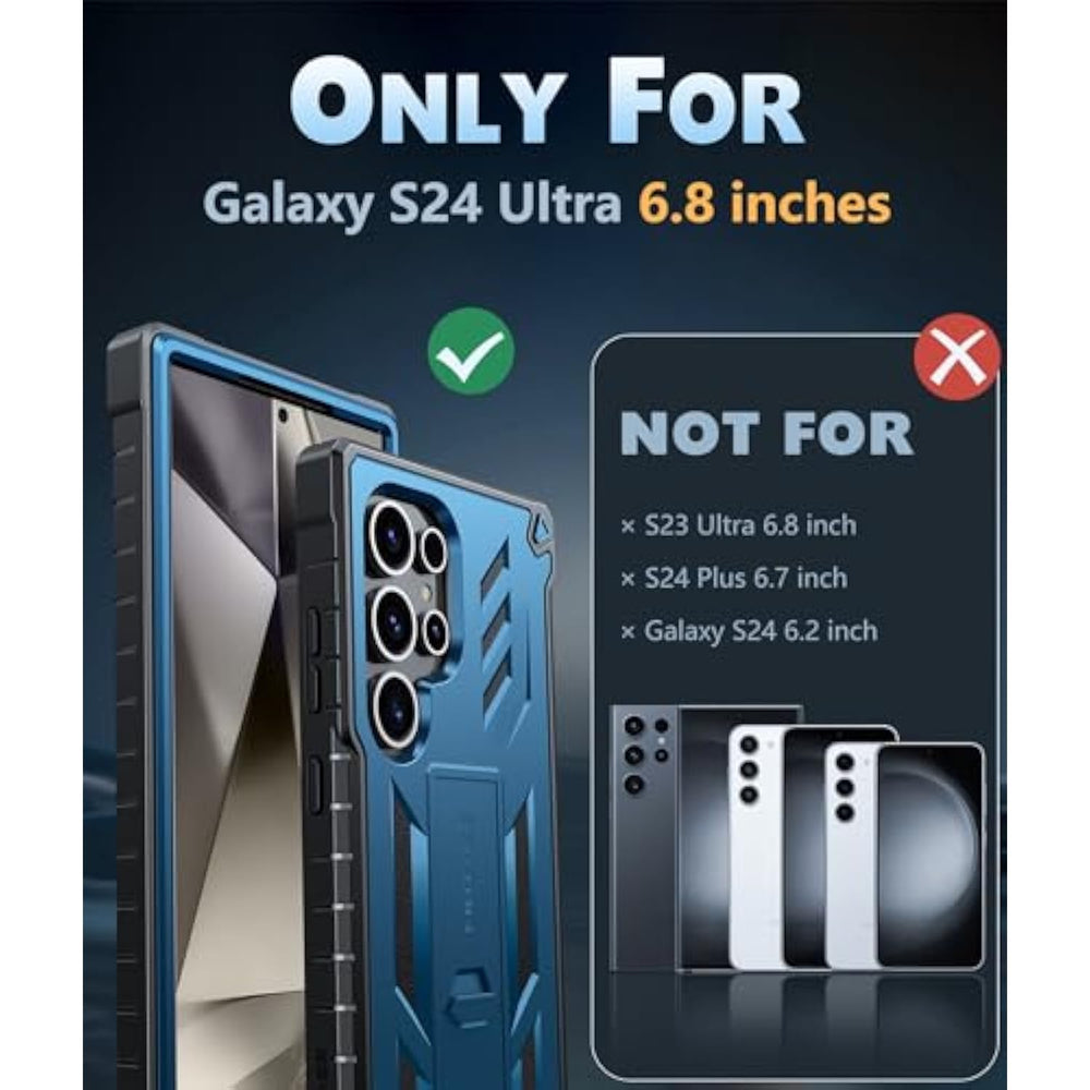 | Dual-Layer Protection: This Samsung Galaxy S24 Ultra Case Has A Dual-Layer Sturdy Protection Structure: Military-Grade Drop Tested, Drop Proof, Impact Resistant, Scratch Proof Mobile Phone Case. | | Built-In Kickstand: This Galaxy S24 Ultra Case With A Stand Works Perfectly Both In Vertical And Horizontal Positions. Convenient For Reading, Watching Movies, Playing Games, Browsing The Web, And Face-To-Face Chatting With Friends.Provides Hands-Free Portrait And Landscape Viewing Angles. | | Bulit-In Screen Protector: With Excellent Light Transmission And Responsive Touch Performance, And Preventing Accidental Scratches On Your Phone. The Built-In Screen Protection Design Perfectly Solves The Trouble Of Put On A Screen Protector For You. | | Full Body Protection: This Samsung Galaxy S24 Ultra Phone Case Has Four-Corner Grooved Airbags, A Unique Shock Absorption Design, And More Comprehensive Protection Of The Fragile Parts Of The Smartphone. Raised Lips Keep The Camera Lifted To Prevent Your Lens From Shock, Collision, And Scratch. Precise Cutouts For Speakers, Camera, And Other Functional Ports Allow You To Access All Ports And Controls Easily. | | Phone Case Galaxy S24 Ultra Use Comfortable: The Non-Slip Texture On Both Sides Has A Better Grip, And Matte Edges Reduce The Adhesion Of Fingerprints And Oil To Ensure Visual Cleaning While Enhancing The Hand-Held Touch To Make The Case Not Easy To Slip From Your Hand. Provides All-Round Protection For Your Mobile Phone Case In All Activities, Especially When Working Outdoors, Doing Sports, Camping, Traveling. | |