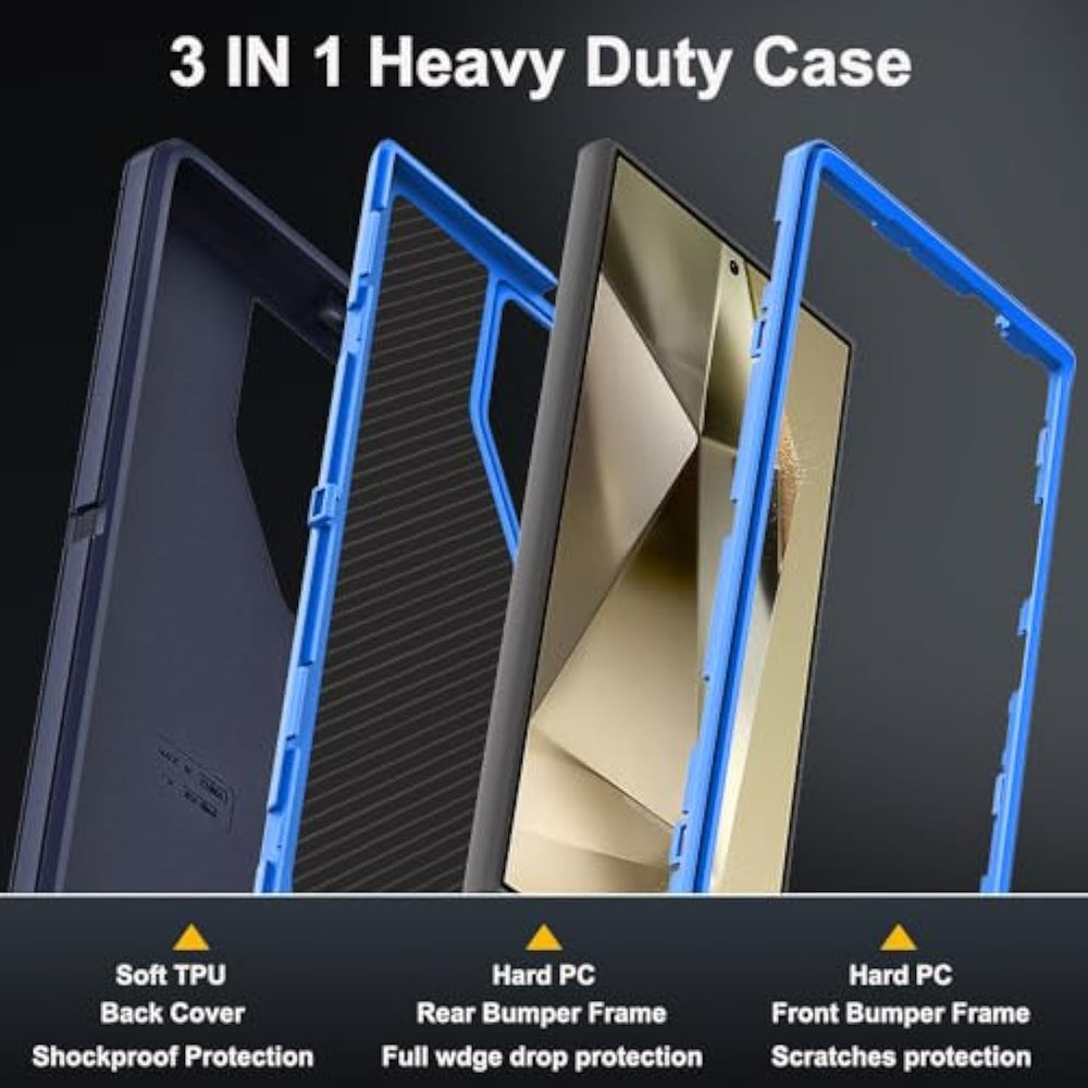 | ???Compatible Phone Models?: Compatible With Samsung Galaxy S24 Ultra(6.8 Inch), [Not Fit Galaxy S24/S24 Plus/S24 Fe], So Please Note Your Phone Model Carefully Before You Place The Order. | | ???Enhanced Screen And Camera Protection?: Galaxy S24 Ultra Case Designed At The Camera And Screen 2.5 And 2Mm Raised Lip, Which Effectively Prevents The From Scratching, Can Better Protects The Camera And Screen, Also Come With 2 Pcs Tempered Glass Screen Protector And 1 Pcs Camera Lens Protector. | | ???Durable And Sturdy Protective Material?: The Heavy Duty Rugged Galaxy S24 Ultra Case Consists Of A Solid Pc Inner Shell, High-Grade Silicone Shock-Absorbing Back Shell, Soft, Smooth And Easy To Clean While Still Providing Excellent Drop Protection And Anti-Scratch Performance. | | ???Precise Cutout Wireless Charging Ready?: The Wide Accurate Cutouts And Responsive Press Buttons Case Make It Easy To Get Access To All The Ports, Cameras, Speakers And Mics And Other Functions Of Your Phone. Easy To Press, (Supports Wireless Charging). | | ???What You Get?: Samsung Galaxy S24 Ultra Case X 1, Tempered Glass Screen Protector X 2, Tempered Glass Camera Lens Protector X 1, Cleaning Kits X 2, Our Products Come With 90 Days , If You Have Any Questions Or Anything You Feel Unsatisfied, Just