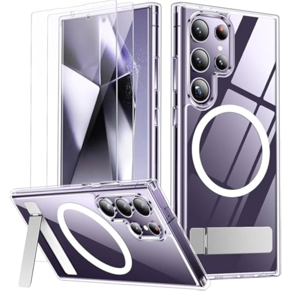 | ?Fit Perfectly? Only Designed Foramsung Galaxy S24 Ultra Case 6.8 Inch. Precise Cutouts For Easy Access To All Ports, Buttons, Sensors And Cameras. Sensitive Buttons With Good Response Are Easy To Press. Supports Wireless Charging. | | ?Super Strong Magnetic?With A Built-In Magnetic Ring That Aligns Perfectly With Magnetic Chargers, This Case Offers A Stronger Attachment And Faster Charging Speed. Compatible With All Magnetic Accessories And Wireless Chargers (Such As Car Wireless Charger, Wireless Power Banks, Magnetic Wallets, Etc). | | ?Functional Invisible Stand? The Stand Of The Phone Case Is Foldable, Sturdy And Built To Last, With Built-In Handy Stand Made By Light And Solid Aerospace-Grade Aluminum Offering A Sturdy And Flexible Portrait, Landscape Or Conference