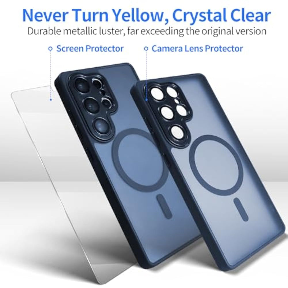 | Compatible:The For Samsung Galaxy S24 Ultra Case Provides Easy Access To All Controls And Features. Enjoy Precise Cutouts For Speakers,Camera, And Other Ports, Enhancing Your Overall User Experience. | | Compatible With Magsafe:This Samsung S24 Ultra Case Includes A Powerful N52 Magnetic Ring, Ensuring Seamless Compatibility With Magsafe Accessories Like Wallets, Car Mounts, And Chargers. Enjoy Enhanced And Safer Wireless Charging. | | Extra Protection:This Samsung Galaxys24 Ultra Magnetic Case With Screen Protector And Camera Lens Protector Made From 9H Hardness Material. Which Can Effectively Prevent Scratches And Collisions Caused By Accidentally Dropping And Maintain The Original Visual Experience | | Drop-Absorption Design:This Galaxy S24 Ultra Case Has A Shock Reduction Reinforced Corner Design,Raised Bezels Protect Your Screen And Camera From Scratches And Cracks | | Comfortable Design:This Samsung Galaxy S24Ultra Matte Case Features A High-Quality Semi Transparent Surface And An Upgraded Nano Oil Repellent Coating, Providing A Silky, Non Stick Feel. | |