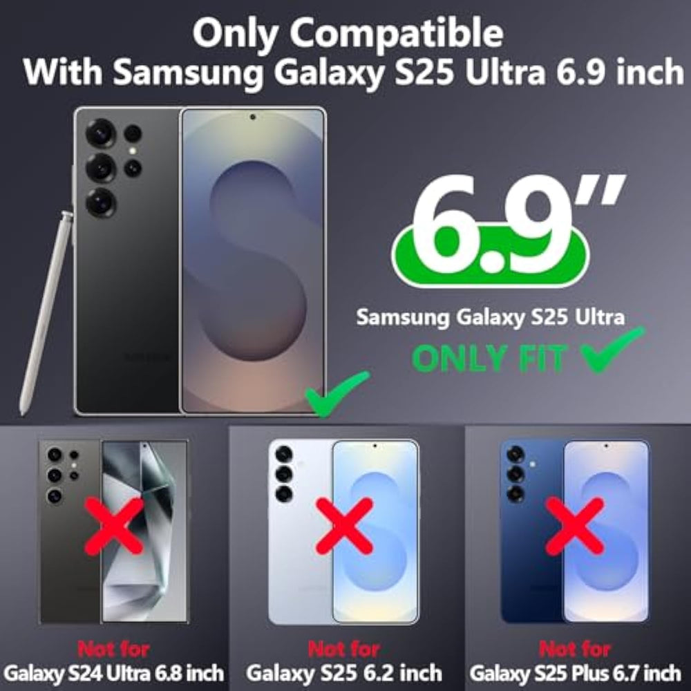 | [Perfectly Fit] Are Committed To Providing Users With Unique Tough Protection Phone Cases, Special Designed For Samsung Galaxy S25 Ultra (6.9-Inch), ?Not Fit Samsung S25 6.2" Or Samsung S25 Plus 6.7"?The Case Needs To Be Taken Apart Before Placing Your Phone In It. Each Package Comes With Installation Instructions, Please Follow The Steps Of The Installation Instructions To Install The Case. Providing You A Brand-New Experience For Samsung S25 Ultra Case. | | [Full Body Protection] This Three-In-One Combination Of Military Grade Tough Protection S25 Ultra 5G Case, Hard Pc+Solid Inner Polycarbonate Shell Soft Cushioning Rubber Outer S25 Ultra Protection Cover, Four-Corner Grooved Airbags, Unique Shock Absorption Design, More Comprehensive Protection Of The Fragile Parts For The Smartphone. Raised Lips Keeps Camera Lifted To Prevent Your Lens From Shock, Collision And Scratch. Dust Protection Port Plugs Lock Out Dust, Dirt So Your Device Stays Clean And Debris Free. | | [Precise Cutout Wireless Charging Ready] Compatible With Samsung S25 Ultra Phone, Easy Access To Touchscreen, Camera, Buttons, And Ports, Make Your Galaxy S25 Ultra Cool And Attractive. Easy-To-Grip And Anti-Slip Design Make The Phone Easy To Hold. Wireless-Charging Compatible Case, Faster And Easier Charging. | | [Built-In Kickstand] This Case For Samsung Galaxy S25 Ultra Case With Stand Works Perfectly Horizontal Positions. Convenient For Reading, Watching Movies, Playing Games, Browsing The Web And Face-To-Face Chatting With Friends. Provides Hands-Free Landscape Viewing Angles Your Hands Free. | | [Best