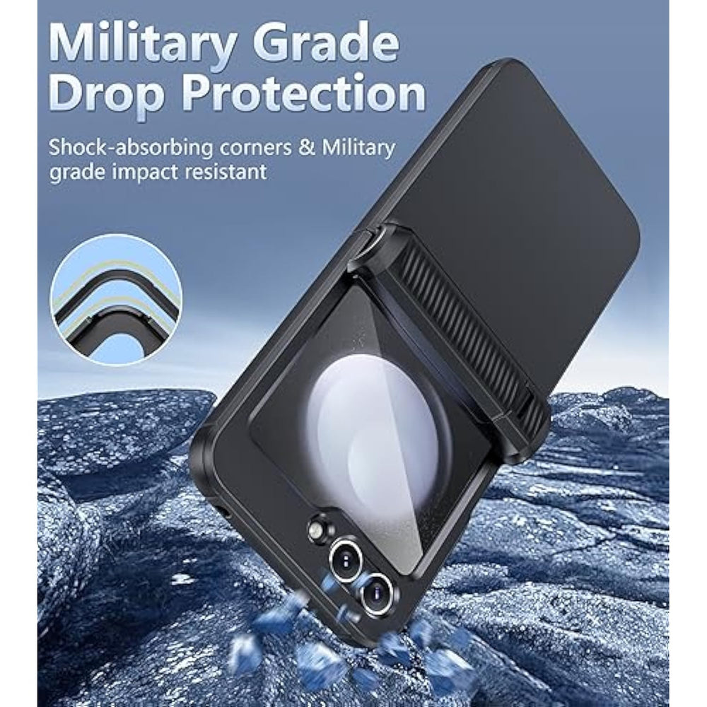| Military Grade Shockproof Protection: Samsung Galaxy Z Flip 5 Phone Case Is Crafted From Sturdy Pc+Tpu Material And Passed Military-Grade Drop Tests To Withstand Drops, Impacts, And Scratches. The Safety Airbags At Each Corner Absorb Vibrations And Safeguard The Most Vulnerable Parts Of Your Phone. Also, The Raised Edge Protects Your Lens From Scratches, Letting You Take Photos Without Worries | | Full Protection With Spring Hinge: Our Galaxy Z Flip 5 Case Is Built With A Unique Spring Hinge Design That Fully Protects Your Device From All Angles. The New Generation Of Spring Hinge Cases Automati
