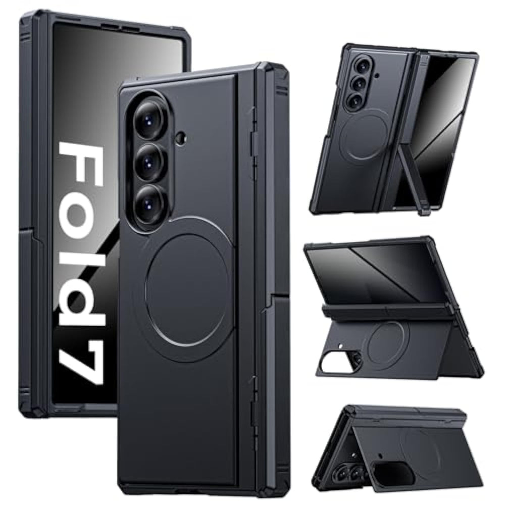 | Upgraded! Strong Magnetic Secure Lock? Samsung Z Fold 7 Case Features An Ultra-Strong Magnetic Array, Fully Compatible With Apple Mag-Safe And Universal Magnetic Accessories. Enjoy Instant, Wobble-Free Alignment For Wireless Charging—No Manual Adjustment Needed. Perfect For Magnetic Car Mounts, Wallets, Or Stands, Ensuring Secure Attachment During Commutes, Workouts, Or Travel | | Sturdy Adjustable Dual Kickstand?Say Goodbye To Hand Fatigue! This Slim Phone Case For Samsung Z Fold 7 Features Hidden Vertical And Horizontal Kickstands, Rigorously Tested Over 12,000 Times For Unwavering Stability On Desks, Planes, And More. Effortlessly Adjust To Any Angle For Hands-Free Portrait Or Landscape Viewing, Perfect For Streaming, Video