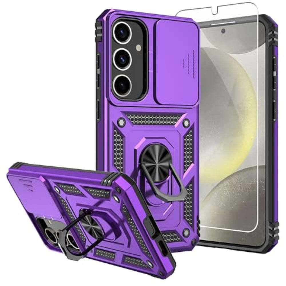 | ? Perfect Fit?Designed For Samsung Galaxy S24 6.2 Inch. Won’T Compatible With Any Other Phone Models.Precise Cutouts Ensures Full Access To All Ports And Buttons. Package Inludes A Pet Hd Screen Protector (Plastic) | | ?Camera Protection?Unique Design Of Camera Slide Cover,Higher Than The Rear Camera Lens, Protects The Camera Lens Against Scratches,Scrapes,Impacts While Helps Protect Your Privacy From Revealing | | ?Full Body Protection And Shockproof? Dual Layer Back Bumper(Soft Tpu + Hard Pc ) Military-Grade Protection, To Protect The Back And Sides Of Your Phone Against Scratches, Shock, Bumps, Fingerprints And Dust. | | ?360° Rotating Kickstand Ring?Equipped With Premium Metal Ring Kickstand, Designed For Galaxy S24 Case With Screen Protector Offers Multiple Adjustable Angles. Built In Kickstand Holds Your Phone At Optimal Viewing Angles For Movies Videos And Ase Hands When Watching Films, Playing Games Or Online Chatting. | | ?What You Get? Our Products Come With 30 Days . If You Have Any Questions Or Anything You Feel Unsatisfied, Please Feel Free To